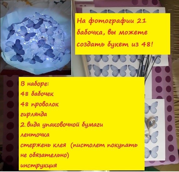 Набор для создания букета из бабочек (светящийся) (нежный) интересное:
