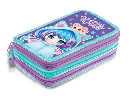 Пенал 3 отделения (Hatber) Девочка-кошка глянцевая ламинация 190х110мм арт.NPn_48100