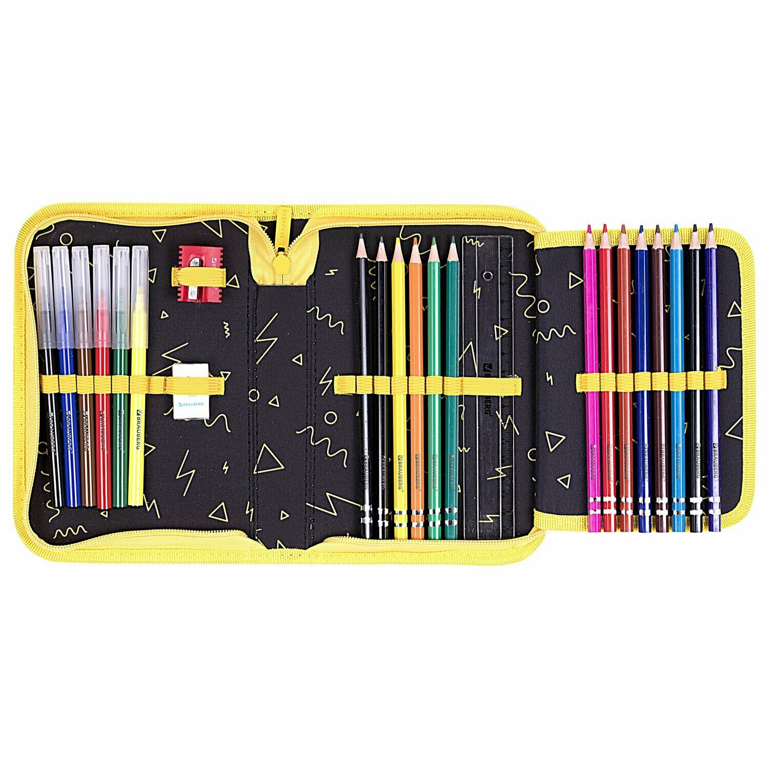 Купить Пенал Brauberg с наполнением, 1 отделение, 1 откидная планка, 24 предмета, 21х14 см, "Rebel"