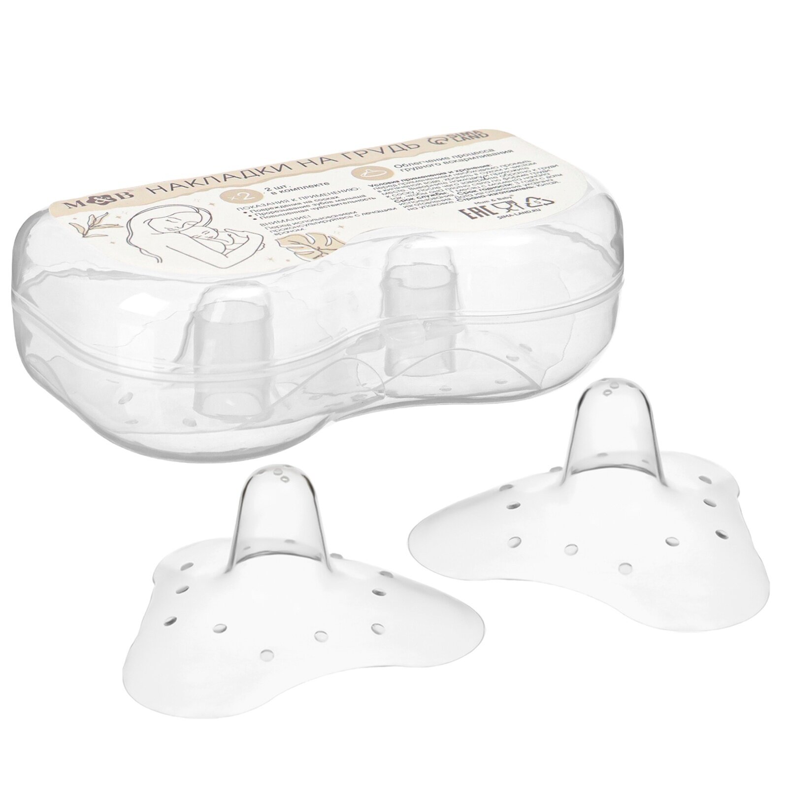 Купить Накладки на грудь для кормления M&B, силиконовые, набор 2 шт, в контейнере