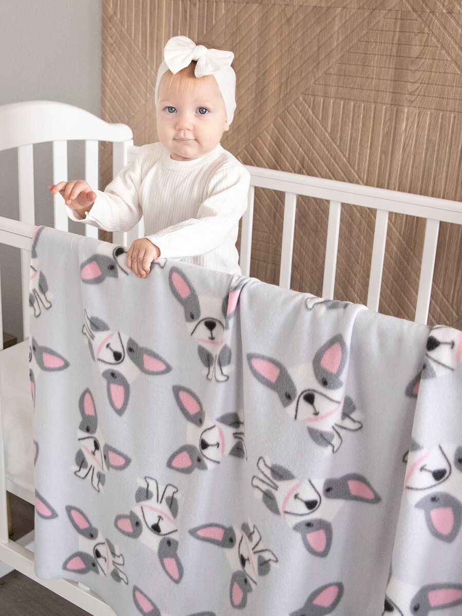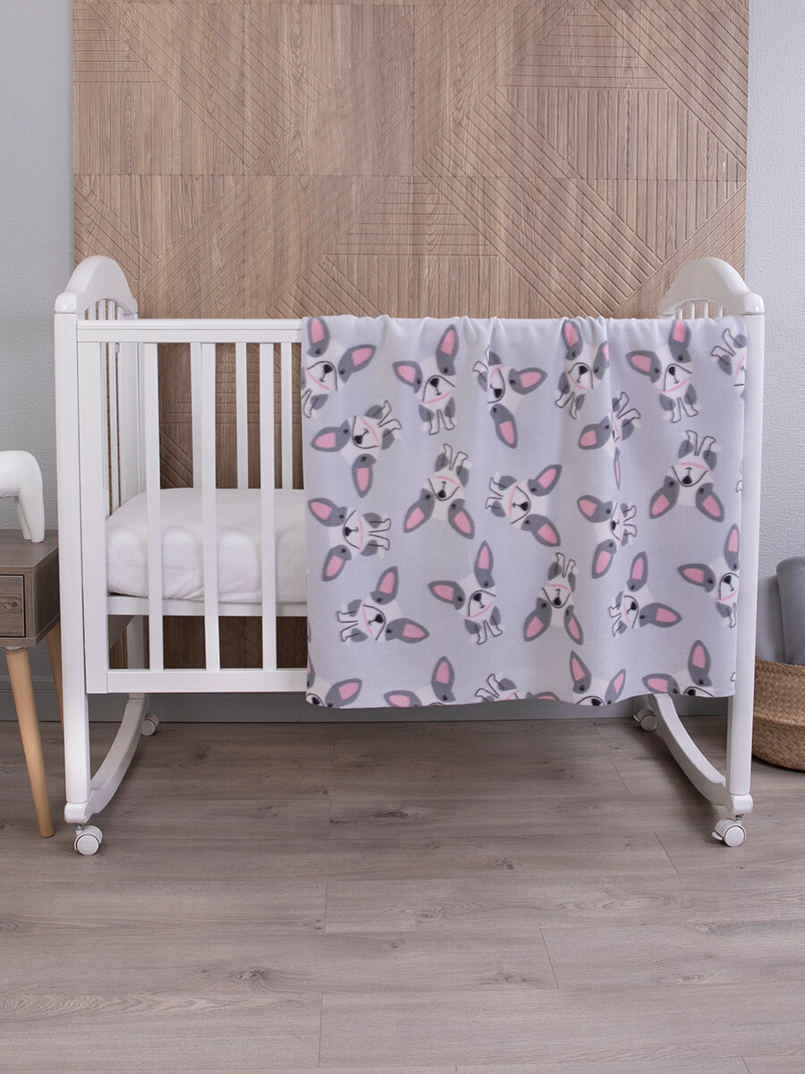 Плед для новорожденных флисовый в кроватку, коляску 100х118 см "Мопсики"