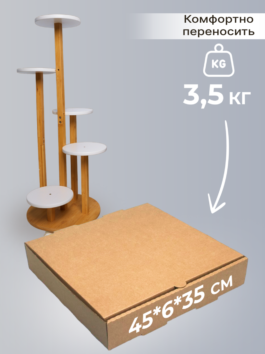 Подставка для цветов RombiLux, напольная, на подоконник, бамбук, 5 кашпо, высота 90 см интересное: