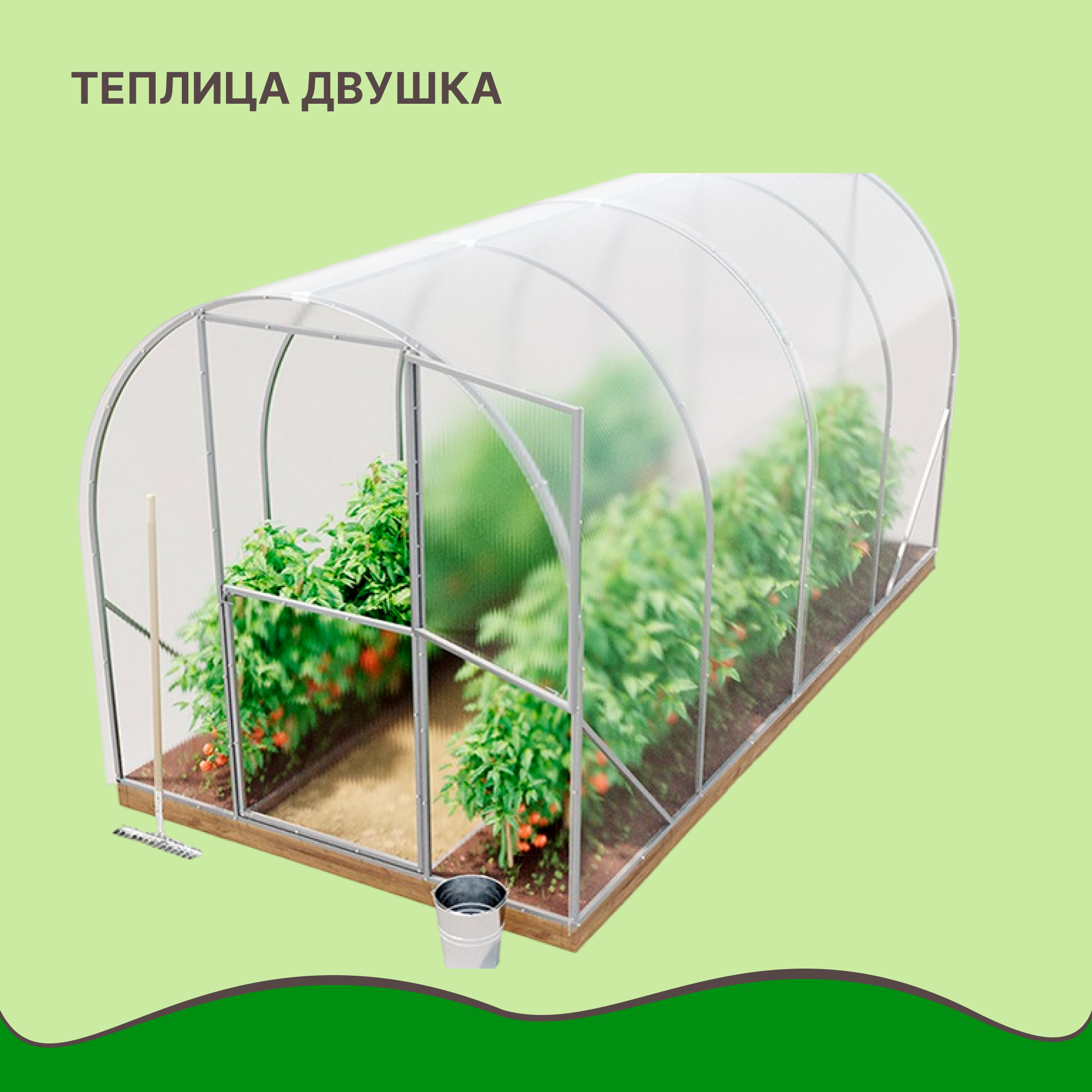 Купить Теплица из поликарбоната Урожай, 2х4 метра, арочная, оцинкованная, с дверями и форточками в торцах