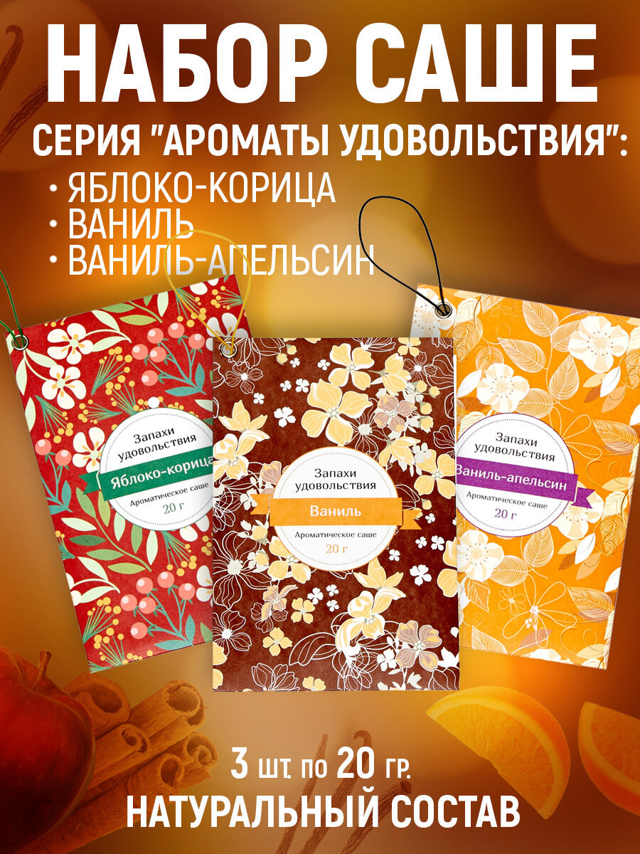 Ароматическое саше"Индокитай"(набор из 3 шт): Яблоко-корица, ваниль, Ваниль-Апельсин интересное: