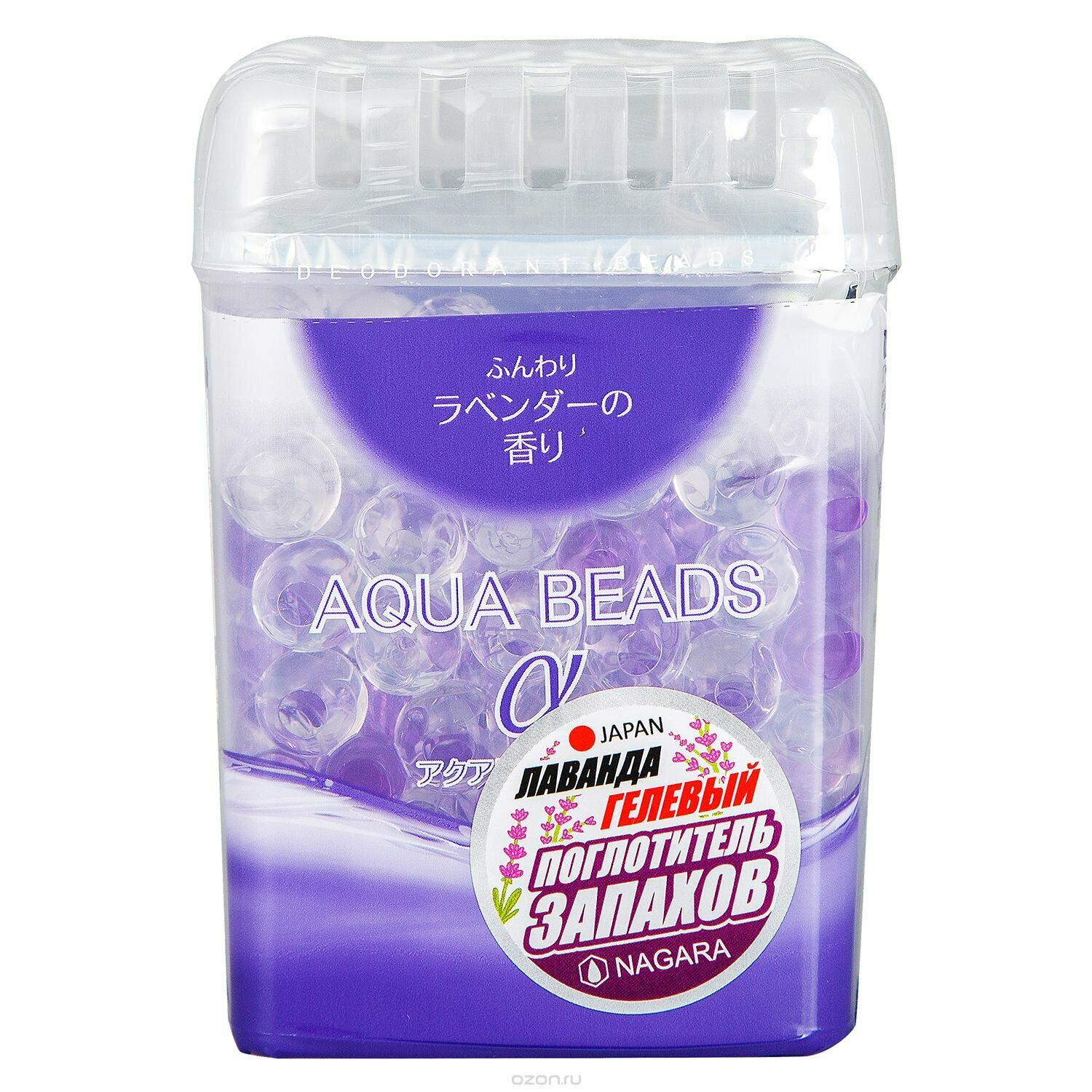 Купить NAGARA Aqua Beads Арома-поглотитель запаха гелевый для помещений с ароматом лаванды / Нейтрализатор запахов табака, животных, обуви, туалета, шкафа (Япония) - 360 г