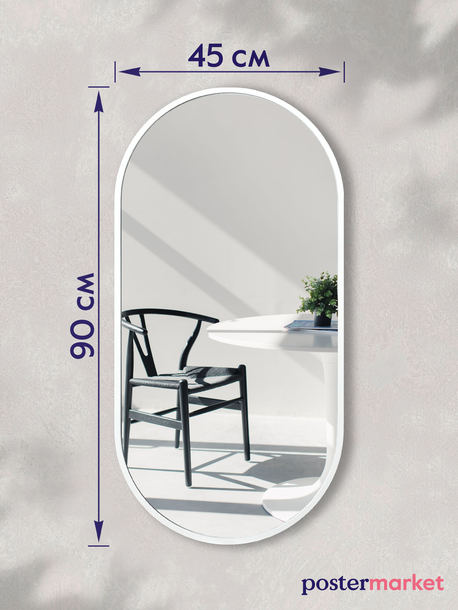 Зеркало Postermarket "Капсула" овальное, настенное, 45х90 см, в белой раме интересное: