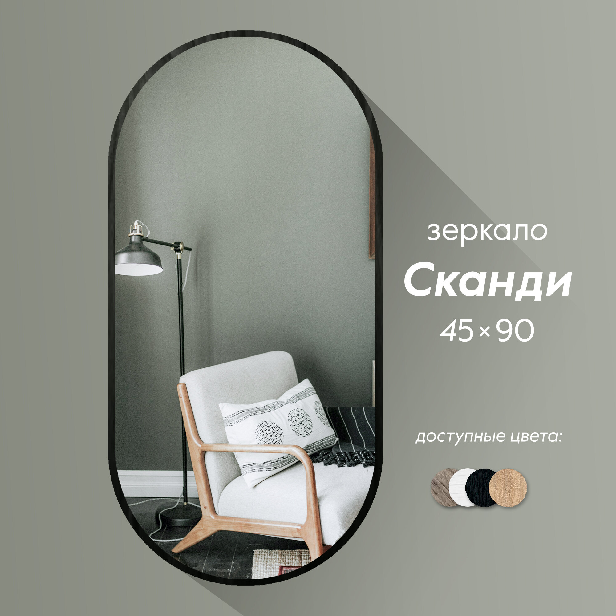 Зеркало Postermarket "Капсула", овальное, настенное, 45x90 см, в черной раме интересное: