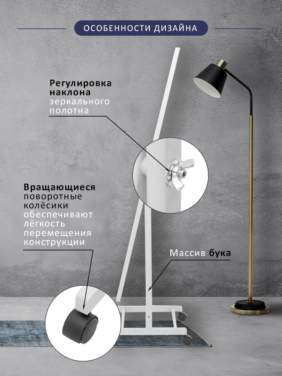 Зеркало напольное Мебелик Стелла 2 шимо светлый Размеры: Высота 1635мм Глубина 440мм Ширина 500мм