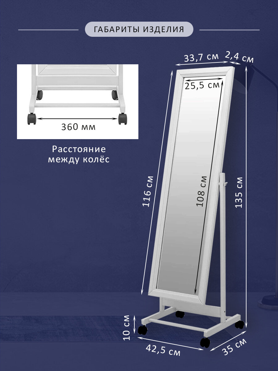 Зеркало напольное Мебелик BeautyStyle 27 белый Размеры: Высота 1350мм Глубина 350мм Ширина 425мм