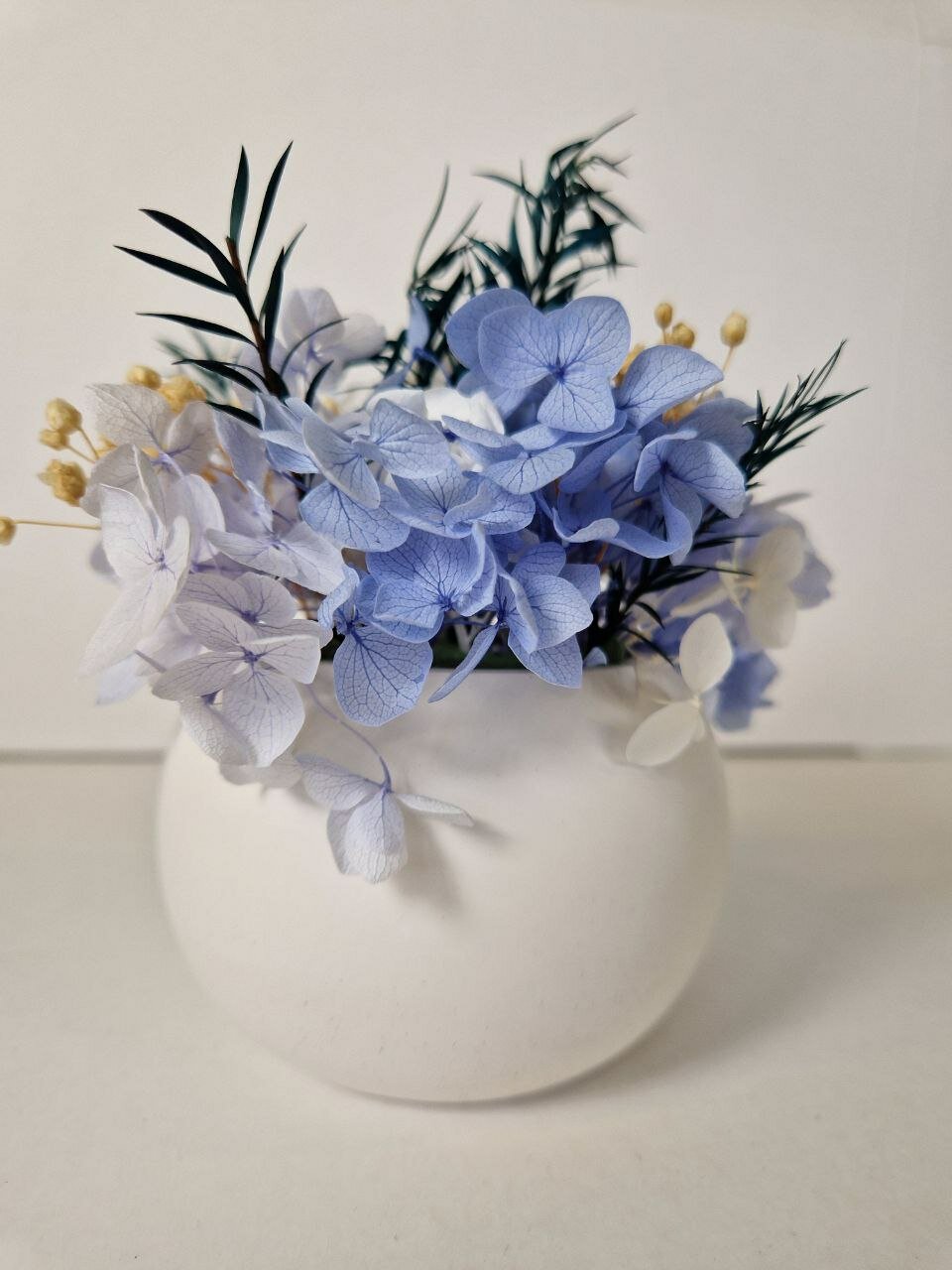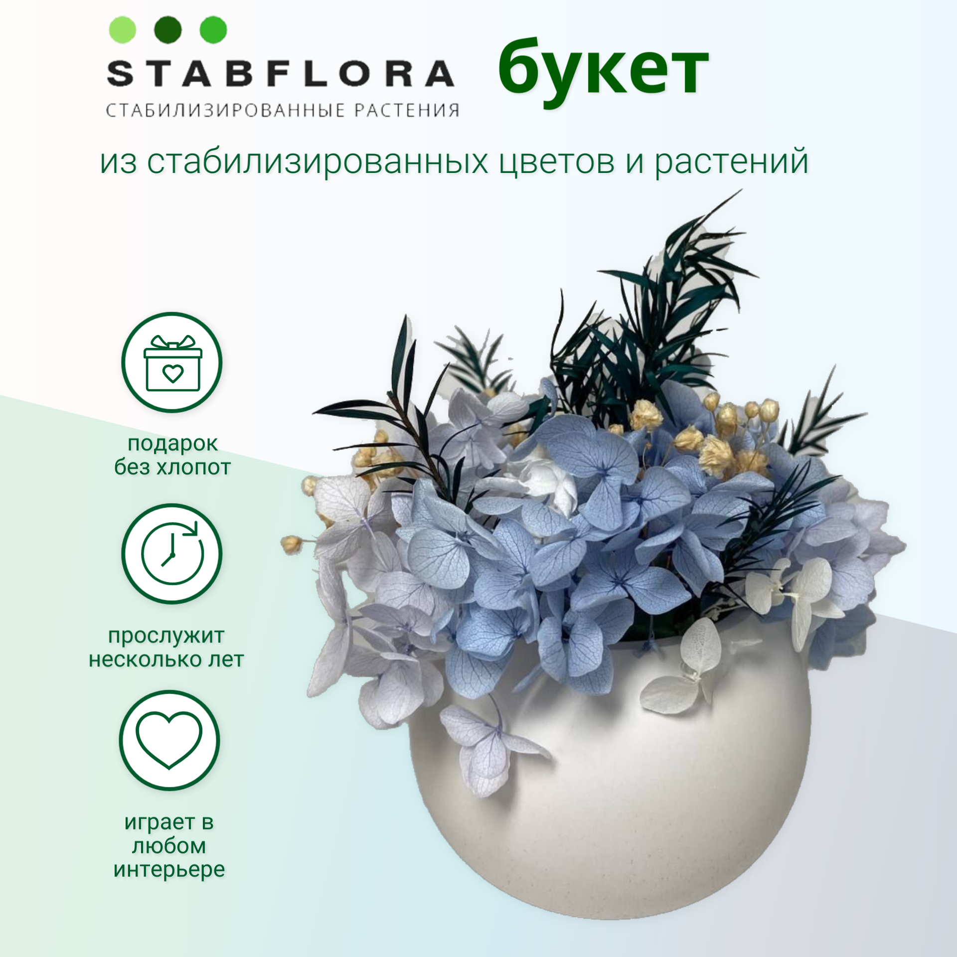 Купить Букет "Голубой каприз", стабилизированные цветы, кашпо из гипса, 15 см