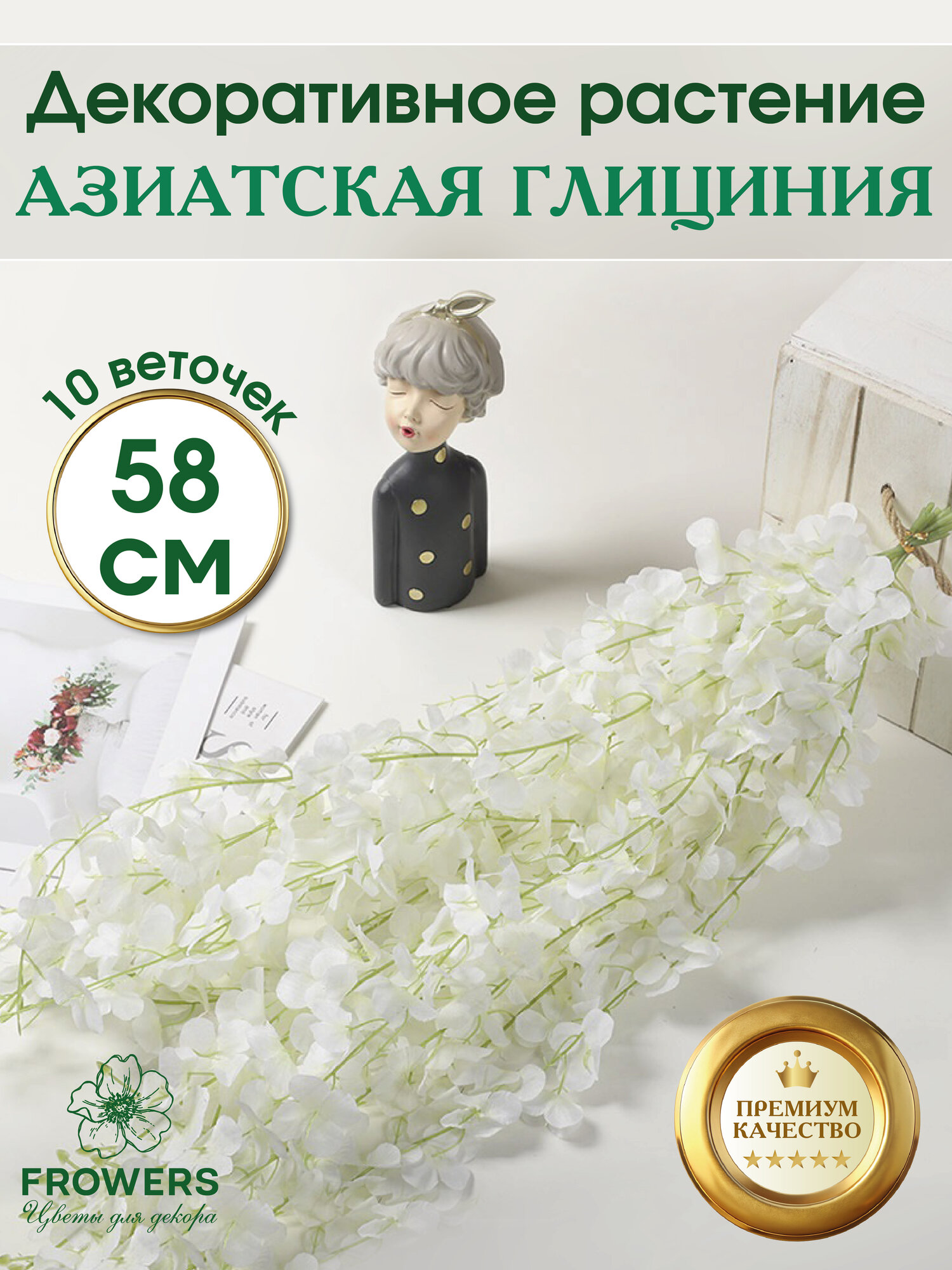 | Подробная комплектация | 10 веточек глицинии |