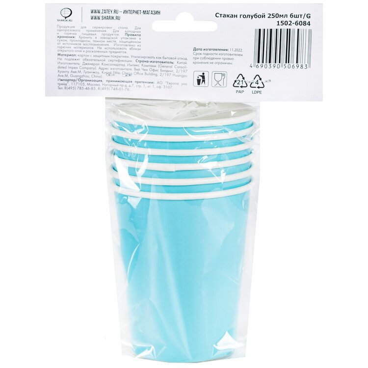 Ниже Вы можете прочитать отзывы на Стаканы бумажные голубые, 6 штук, 250 мл, ознакомится с подробными характеристиками, посмотреть интересные обзоры и фотографии на Стаканы бумажные голубые, 6 штук, 250 мл.