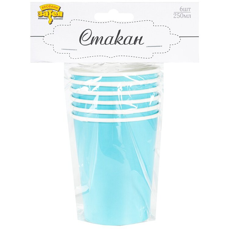 Купить Стаканы бумажные голубые, 6 штук, 250 мл