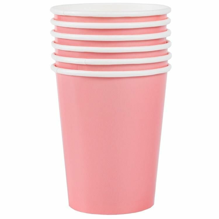 Стаканы бумажные ярко-розовые, 6 штук, 250 мл