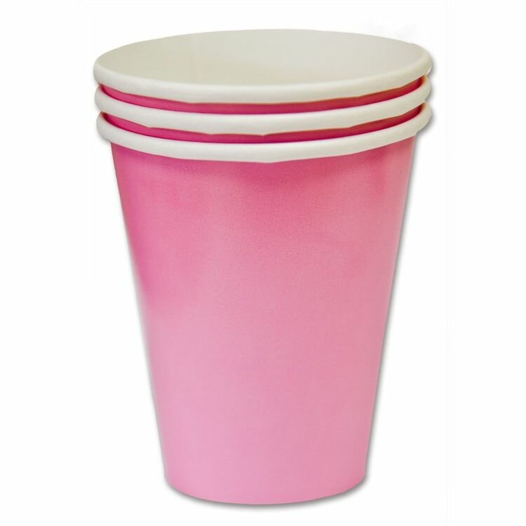 Стаканы бумажные ярко-розовые, 6 штук, 250 мл
