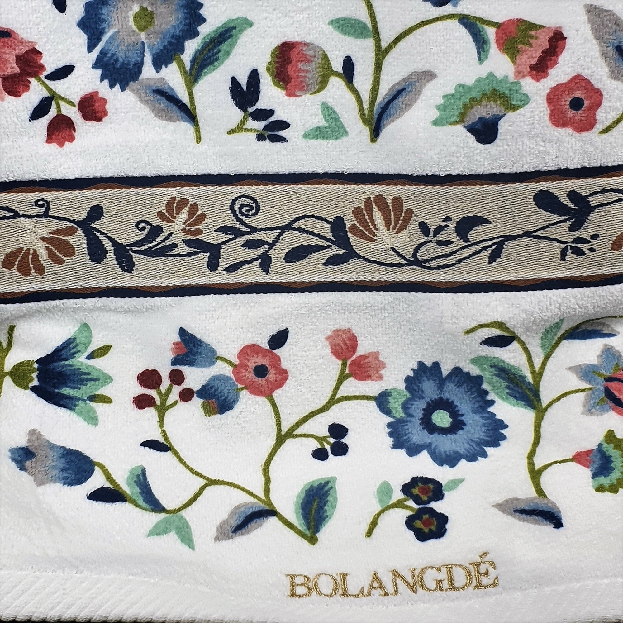 Полотенце для ванной махровое банное большое, велюровое BOLANGDE, 100% хлопок, рисунок цветы, Япония Васильки 70х140, белый/оранжевый/зеленый 1 шт