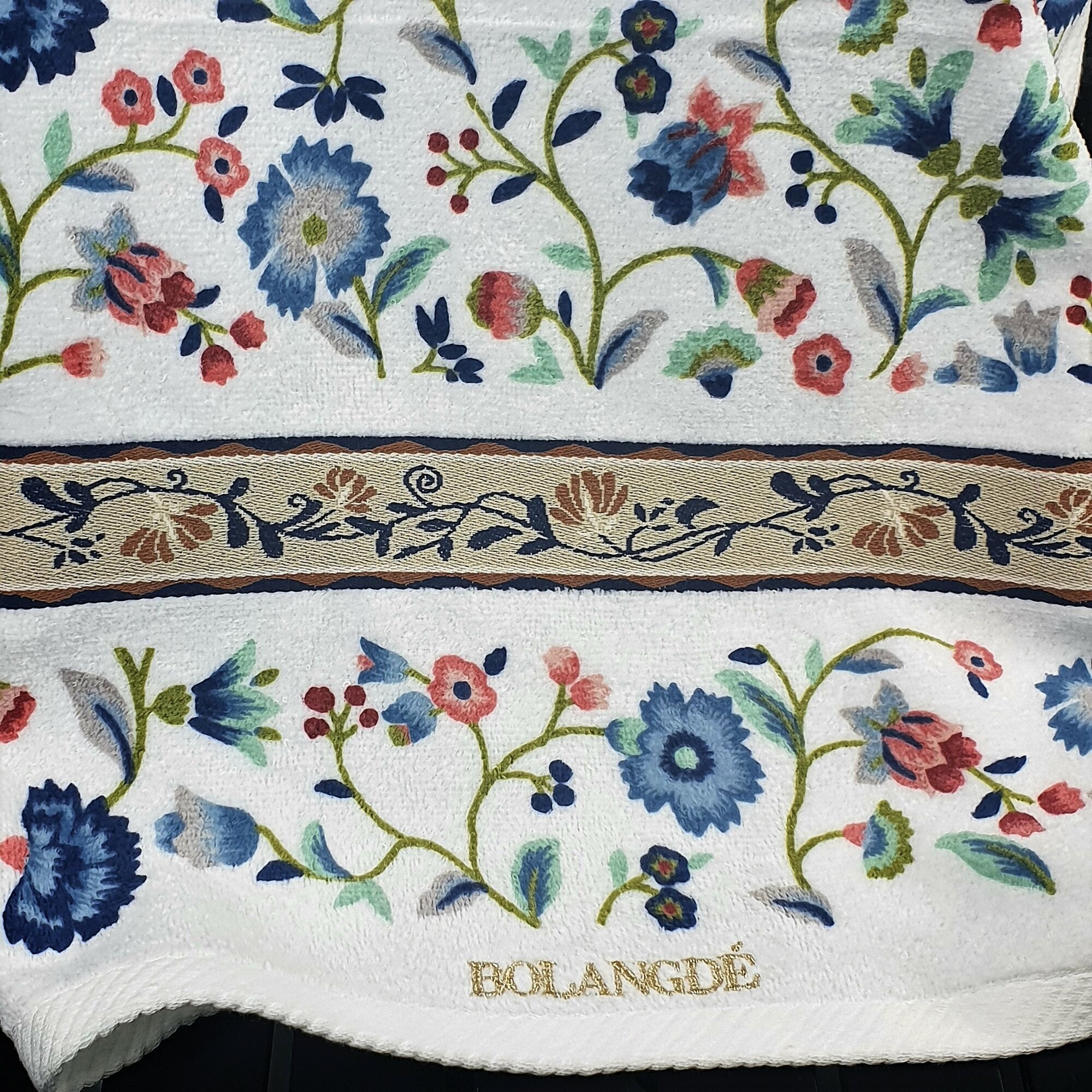 Полотенце для ванной махровое, для лица и рук, велюровое BOLANGDE, 100% хлопок, рисунок цветы, Япония Васильки 50х90, белый/оранжевый/зеленый 1 шт