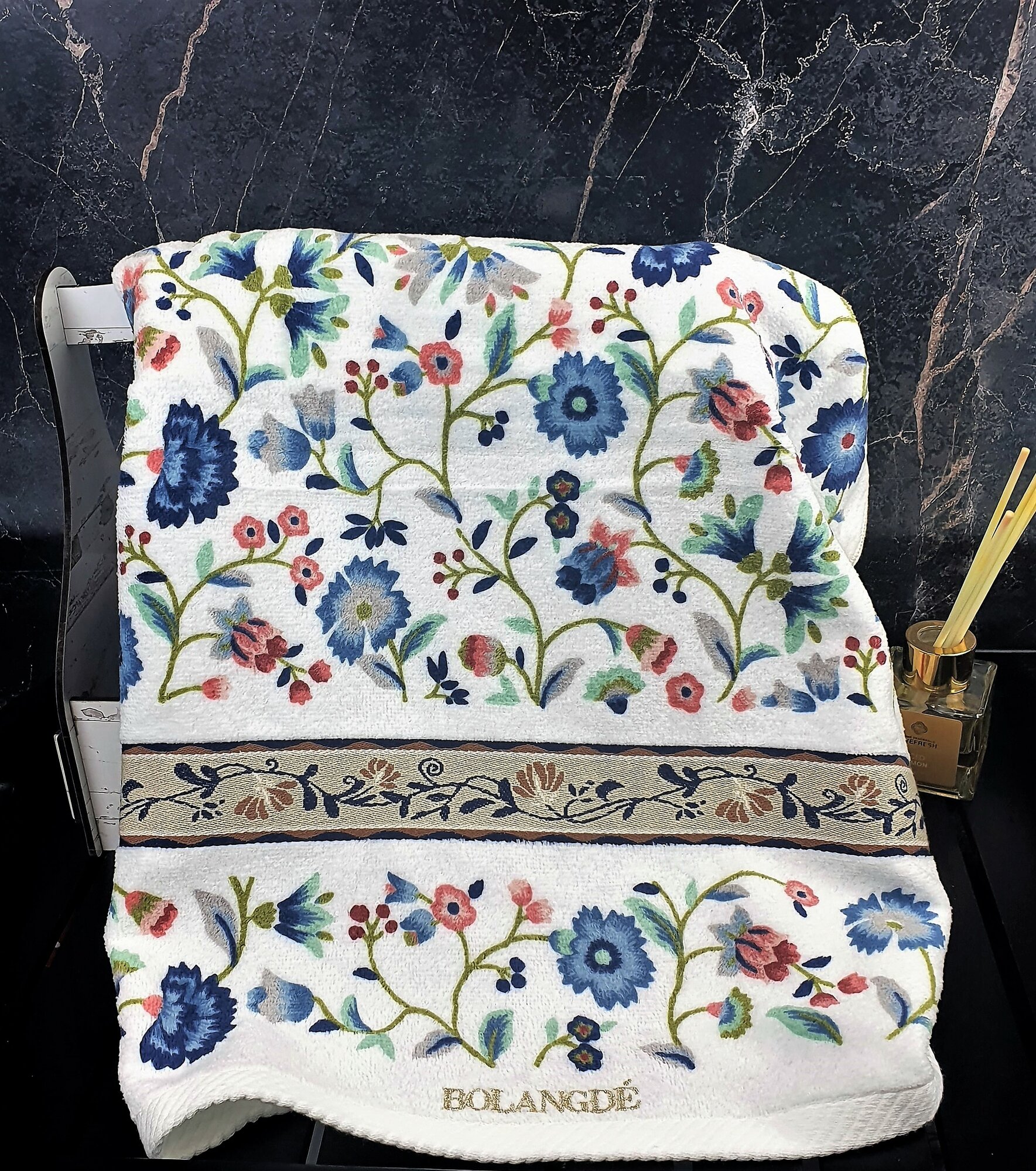 СохранитьПолотенце для ванной махровое банное, BOLANGDE, 100% хлопок, рисунок цветы, Япония Васильки 70х140, белый/синий/розовый интересное:
