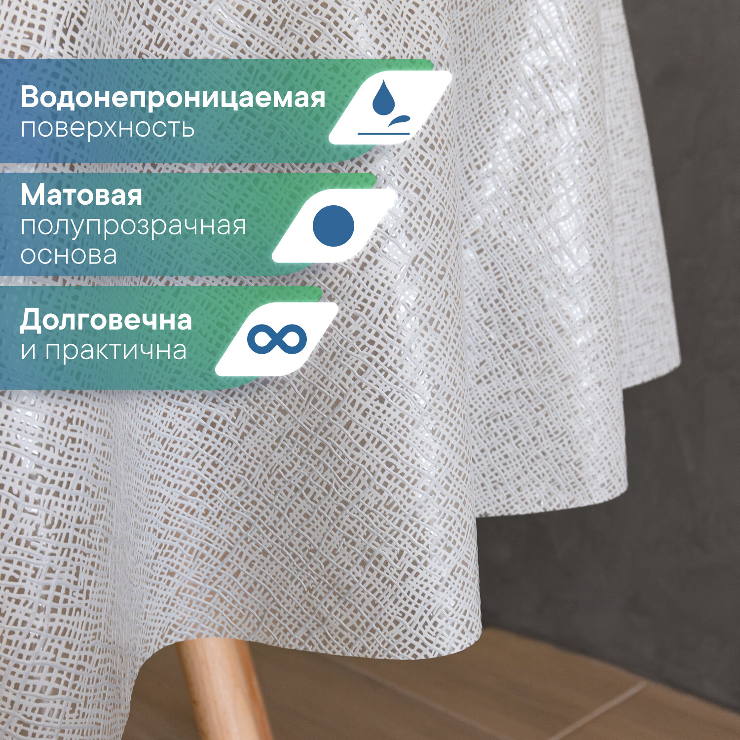 Скатерть круглая клеенка на стол ПВХ VILINA "Элегия" диаметр 128 см. водонепроницаемая с узором / скатерть праздничная белая 005-beige