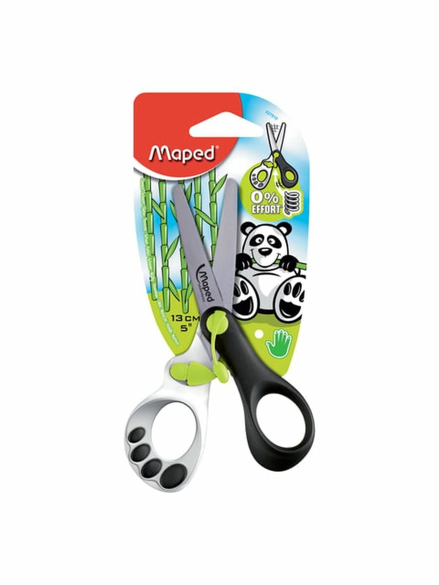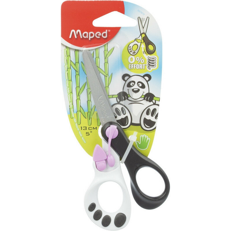 Ножницы 13 см MAPED KOOPY обучающие с механизмом авто открывания, лапа панды на кольце