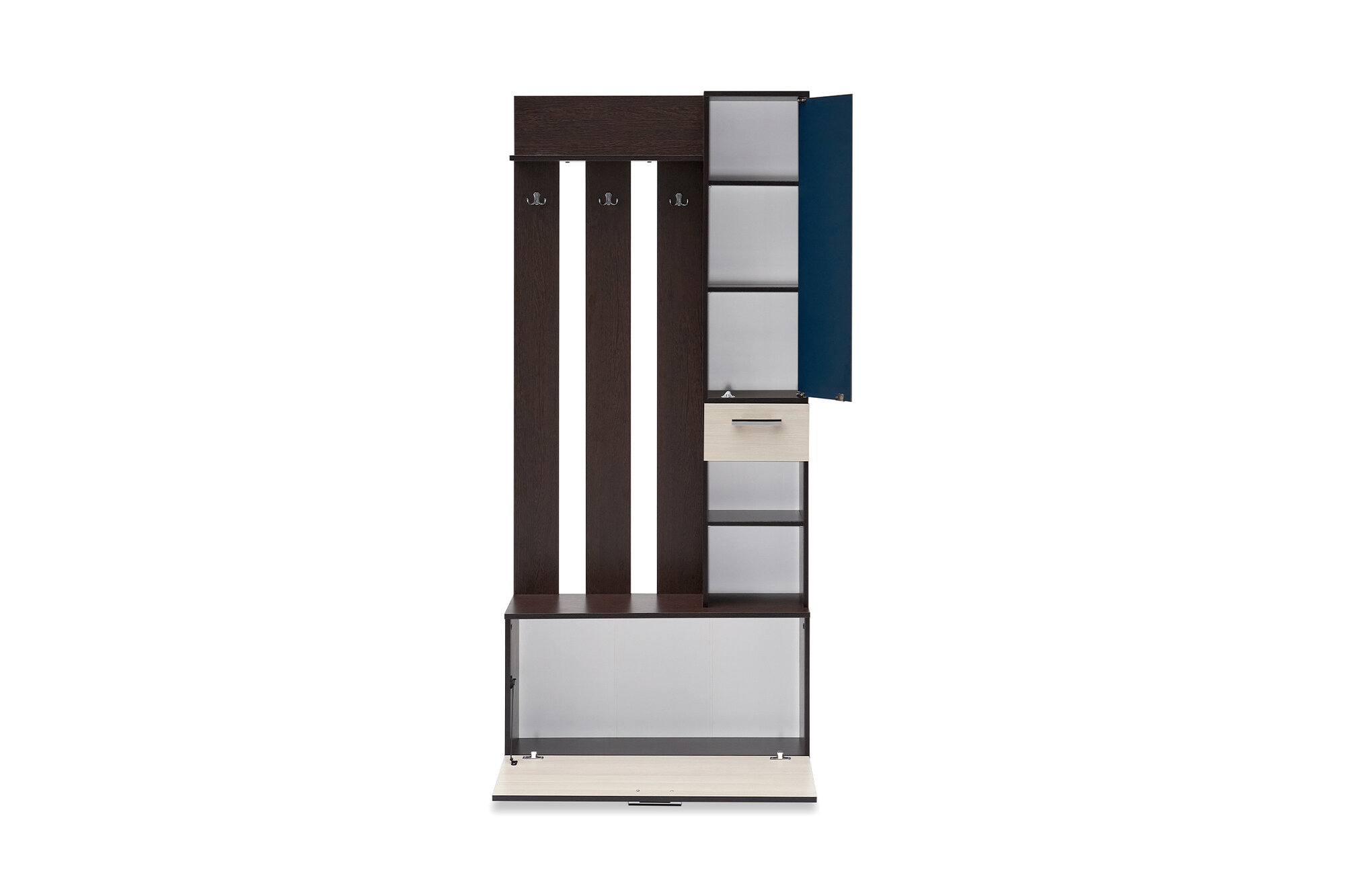 | Состав комплекта | вешалка с зеркалом / вешалка-пенал угловая / шкаф угловой |