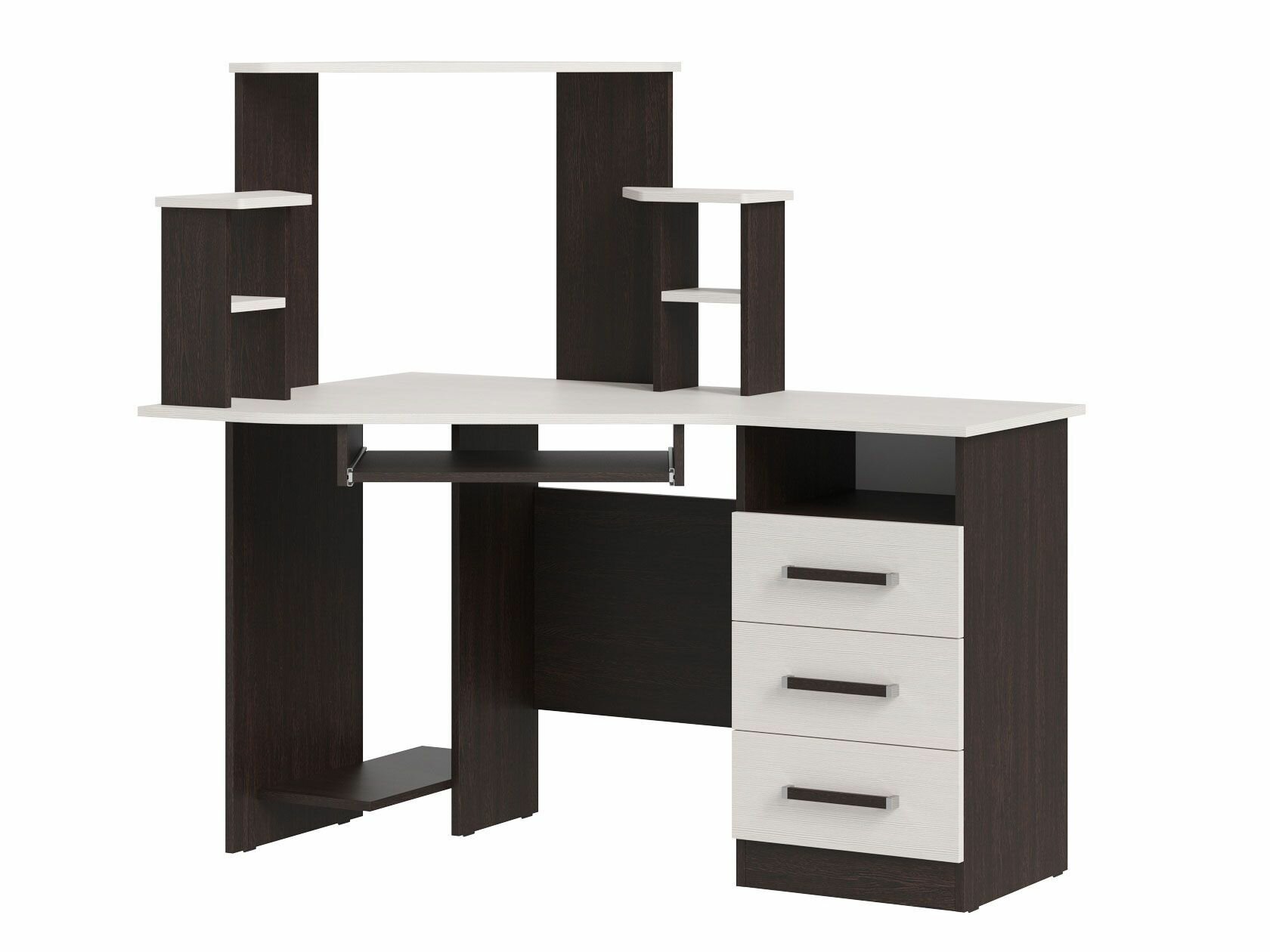 Купить Компьютерный, письменный угловой стол Тамин с ящиками, надстройкой, полками, тумбой, 130х80х130 см, Венге / Лоредо