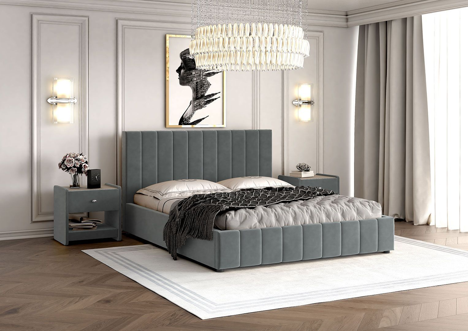 Кровать с матрасом Роза Серая Велюр 160х200