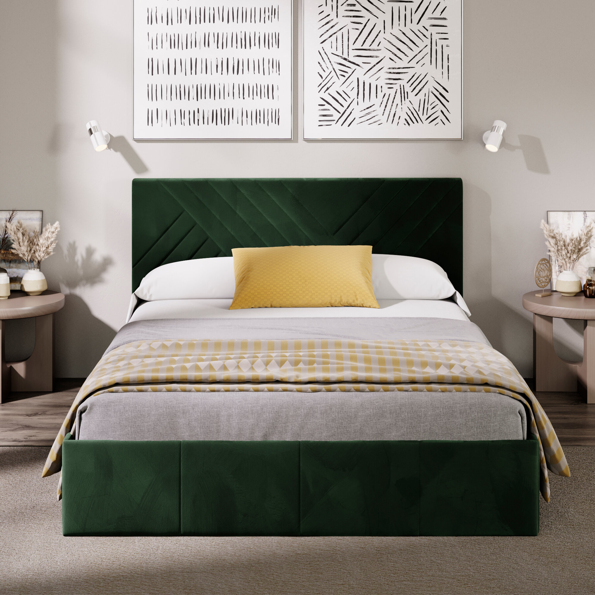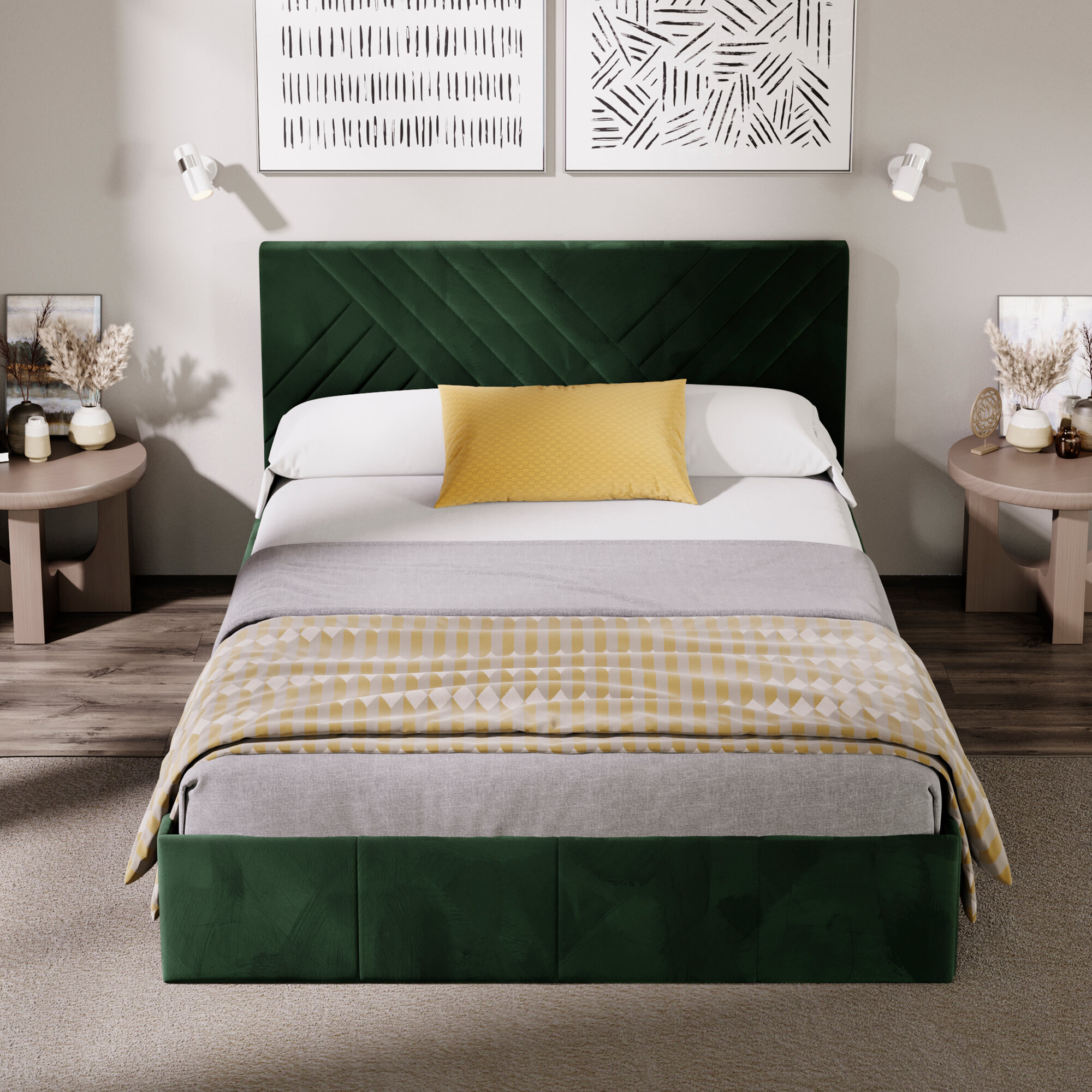 Купить Кровать двуспальная FRENT 140х200 с подъемным механизмом, Дэлли, Велюр Confetti Deep forest