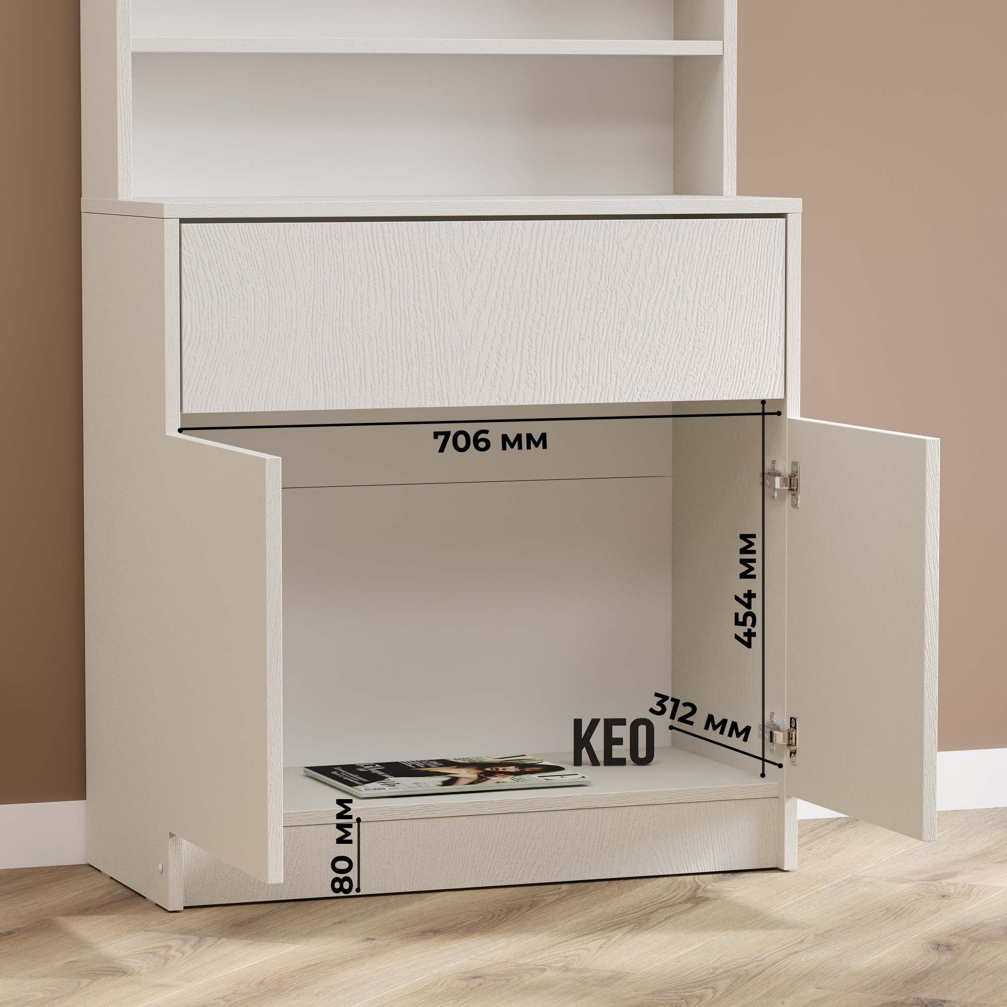 СохранитьКомод с открытыми полками Кео ТБ-150 белый 110х74х33 см с ящиком интересное: