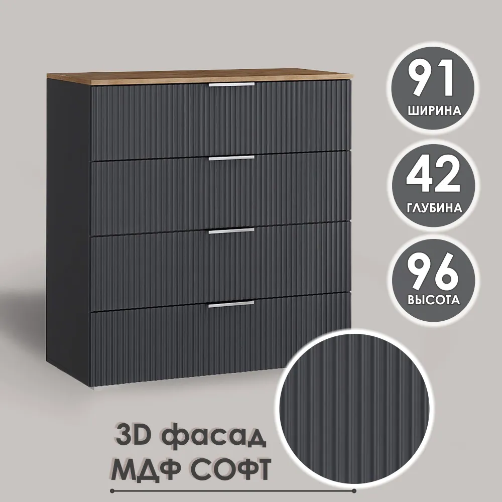 Комод для одежды большой, высокий, в прихожую, спальню Ингрия - 4 grafit , 91х96х42 см интересное: