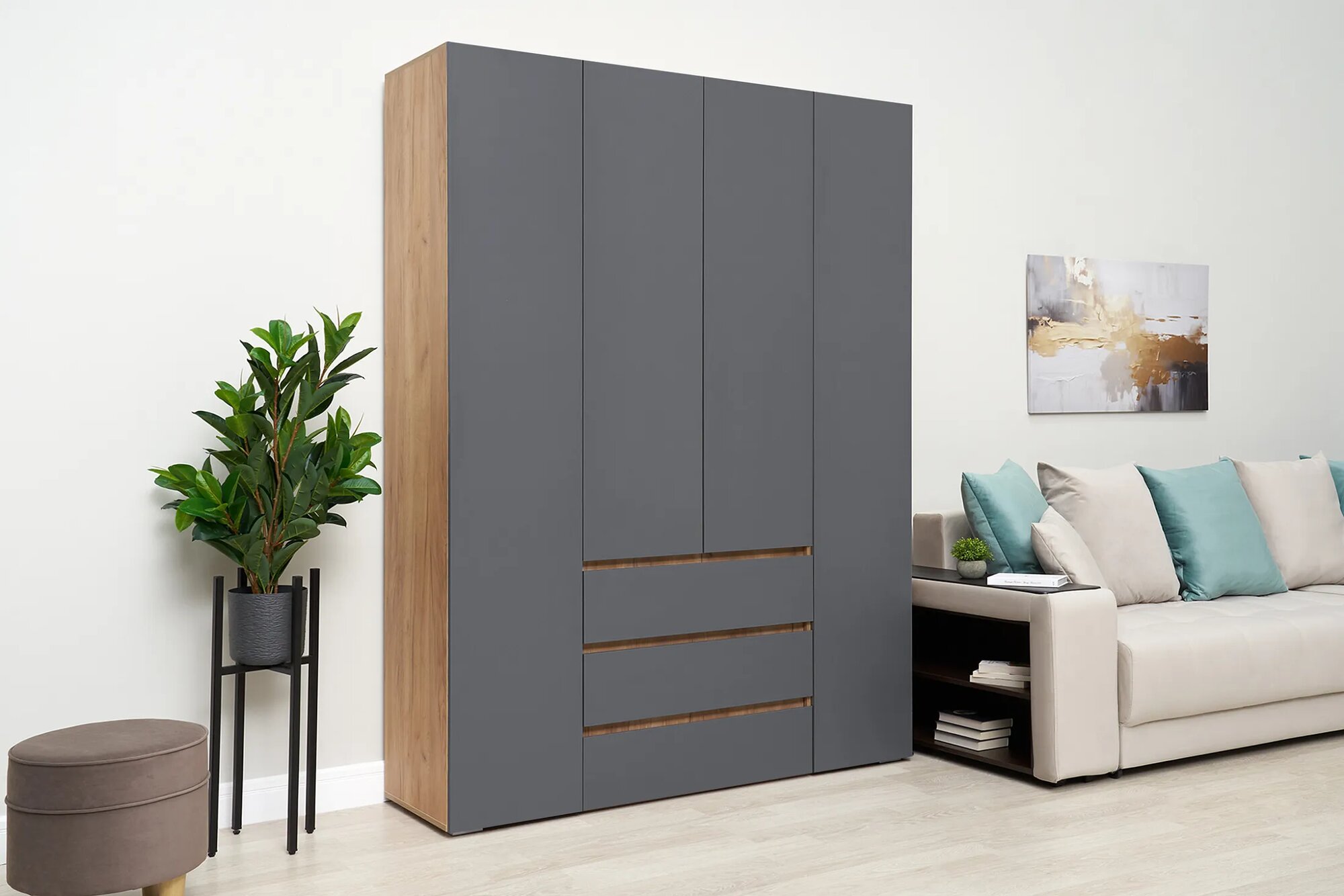 СохранитьХелен ШК 05 Шкаф 4х створчатый с ящиками (1600х2080х460) серый графит/дуб крафт золото интересное: