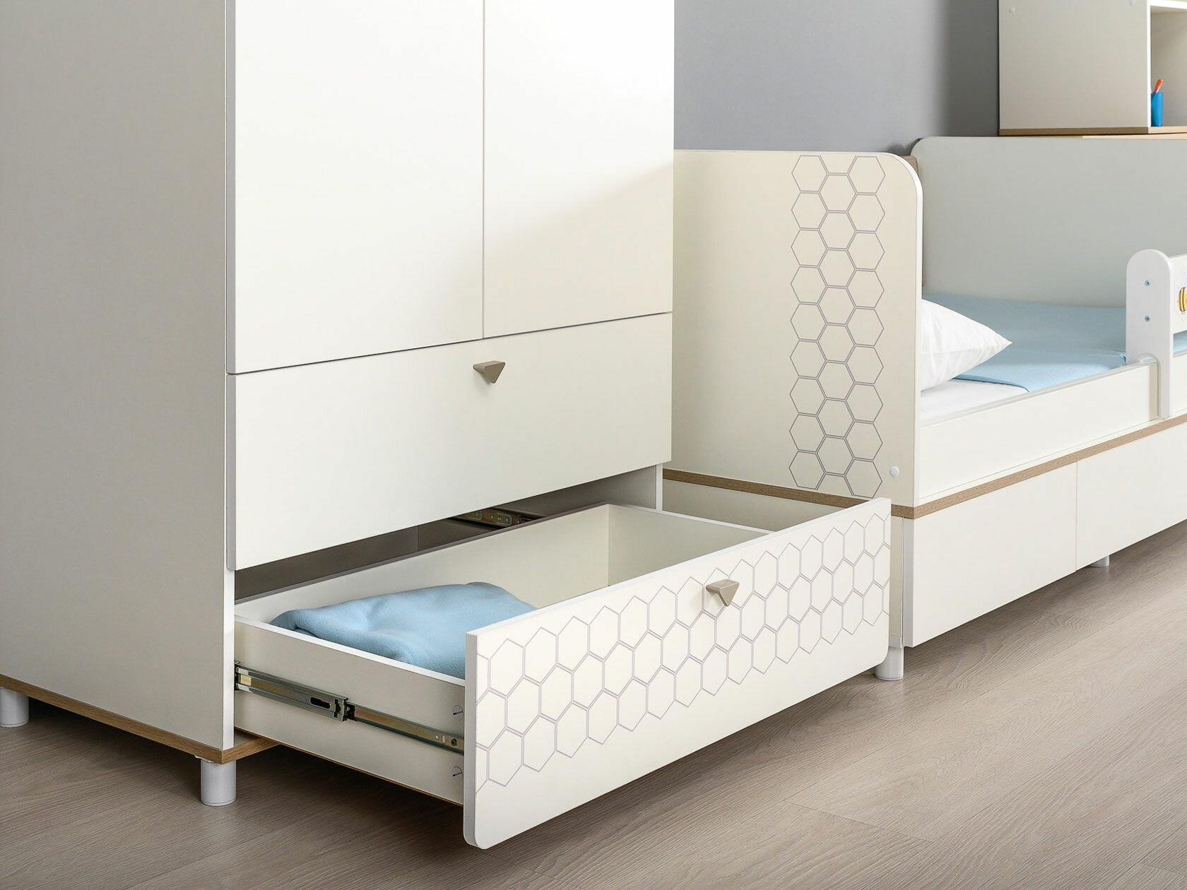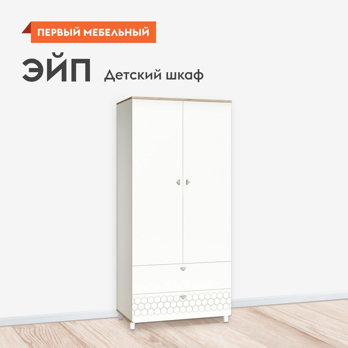 Первый Мебельный Детский шкаф для одежды Эйп с ящиками, с полками, продольная штанга, 85х51х184 см, Белый шагрень / Дуб Белый эксклюзив
