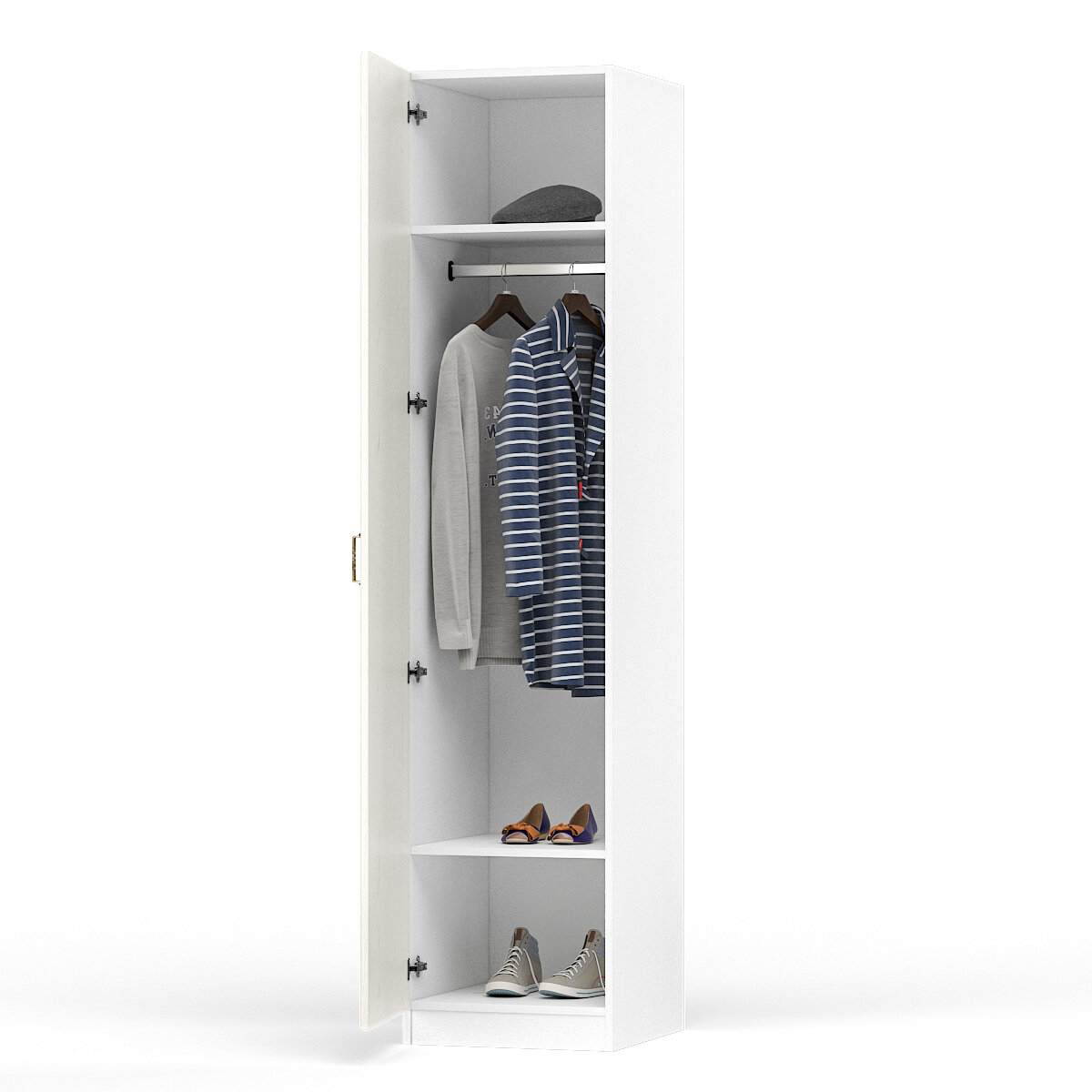 Шкаф для одежды распашной Нонтон Луас, 120 см, 7 полок и штанга, белый глянец