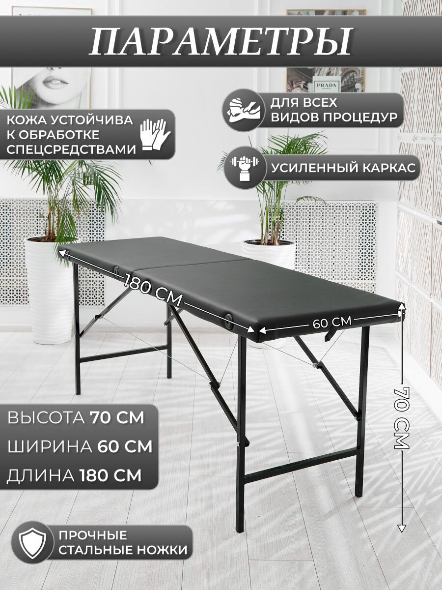 Кушетка косметологическая "Драголит", лак черная, раскладной механизм, длина 180см