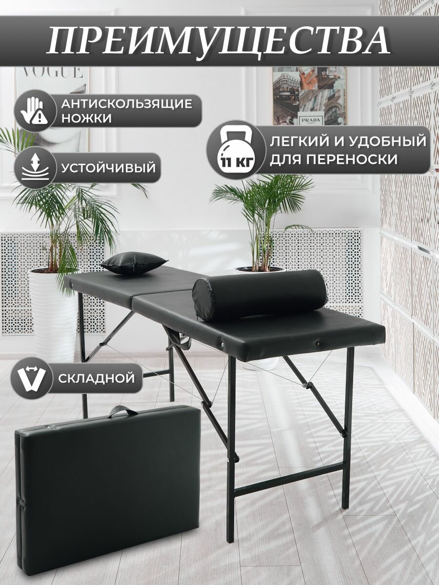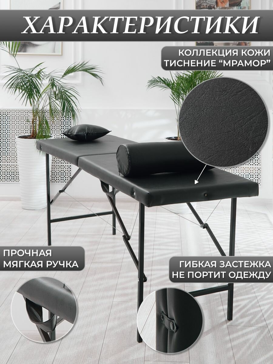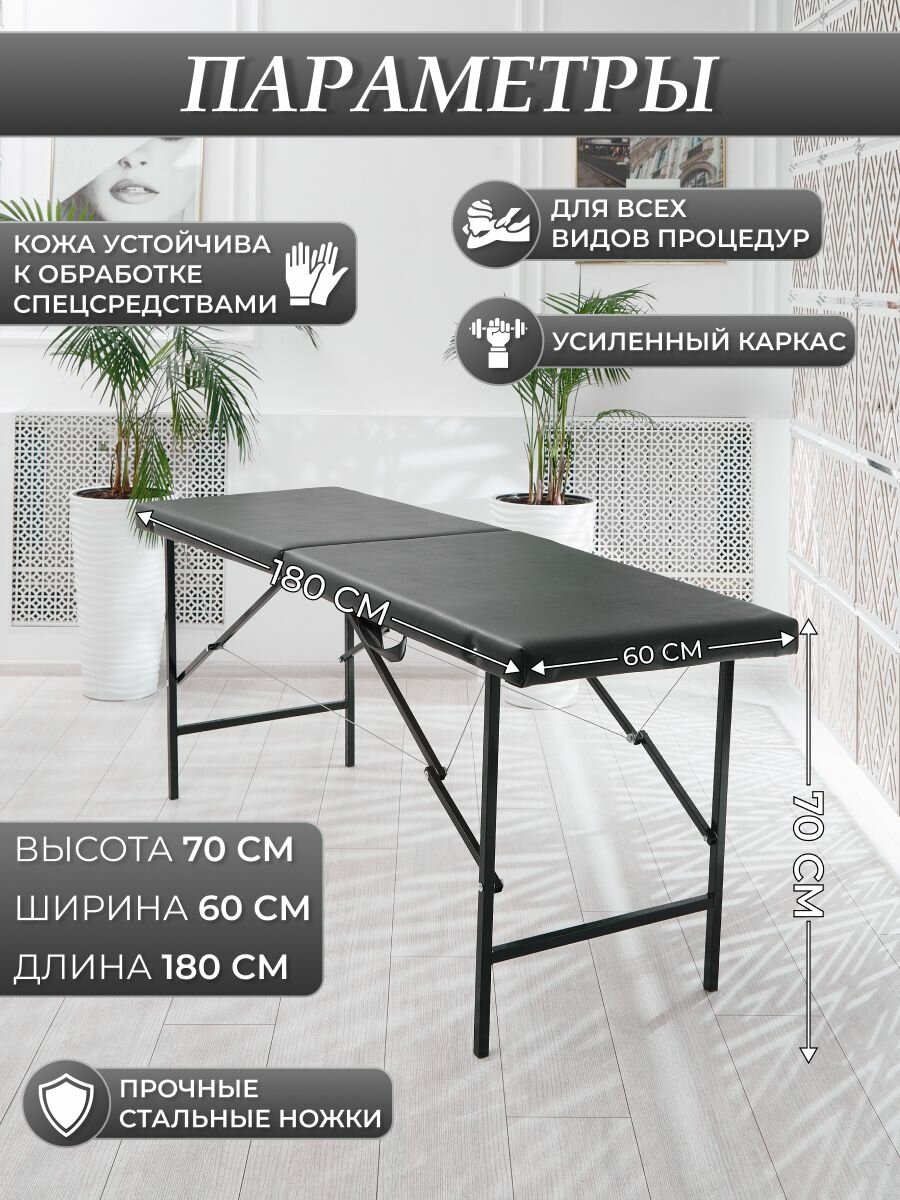 Кушетка косметологическая "Драголит", обивка из искусственной кожи, нагрузка до 200кг, черная