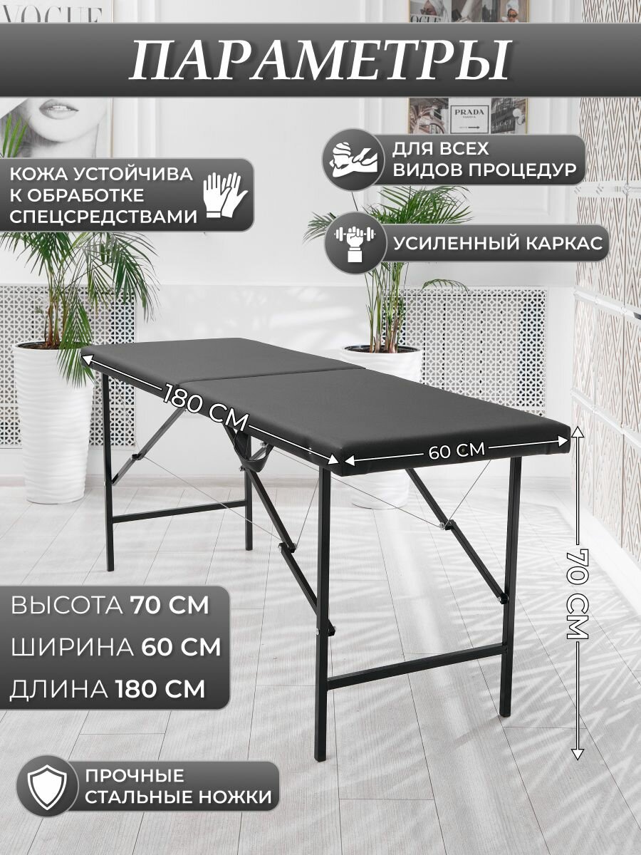 Кушетка косметологическая "Драголит", лак черная, раскладной механизм, длина 180см