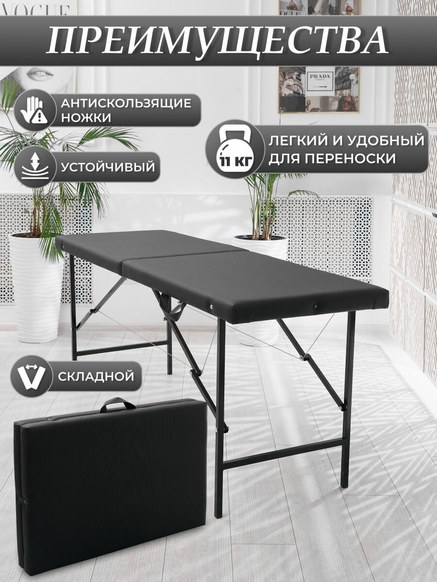 Кушетка косметологическая "Драголит", обивка из искусственной кожи, нагрузка до 200кг, черная