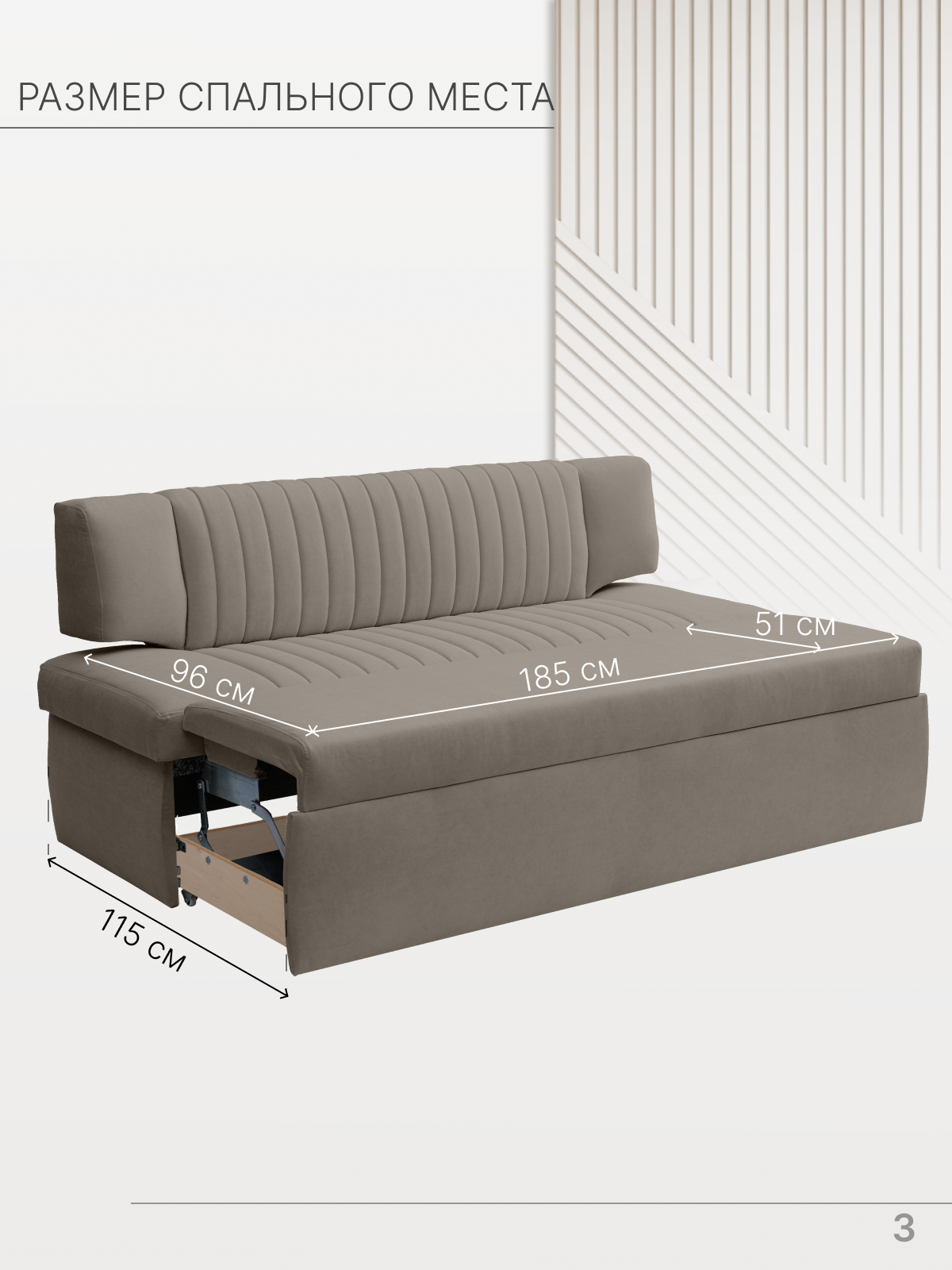 Кухонный раскладной диван Страйп 183х64х83 см. Мелисса 34, прямой раскладной диван со спальным местом, материал обивки Велюр