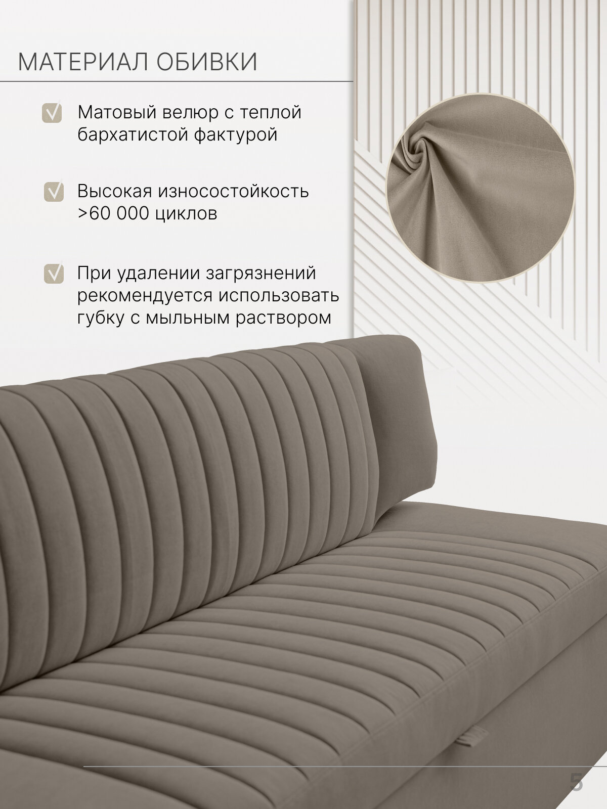 Страйп 198х64х83 см. Мелисса 7, прямой раскладной диван со спальным местом, Темно Бежевый, Велюр, Велюр, для дома и офиса