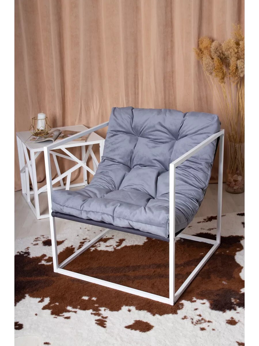 Кресло LOFT18 "Лофт", Белый металл, Светло-Серый велюр, съемные подушки, подлокотники 70*70*70 см