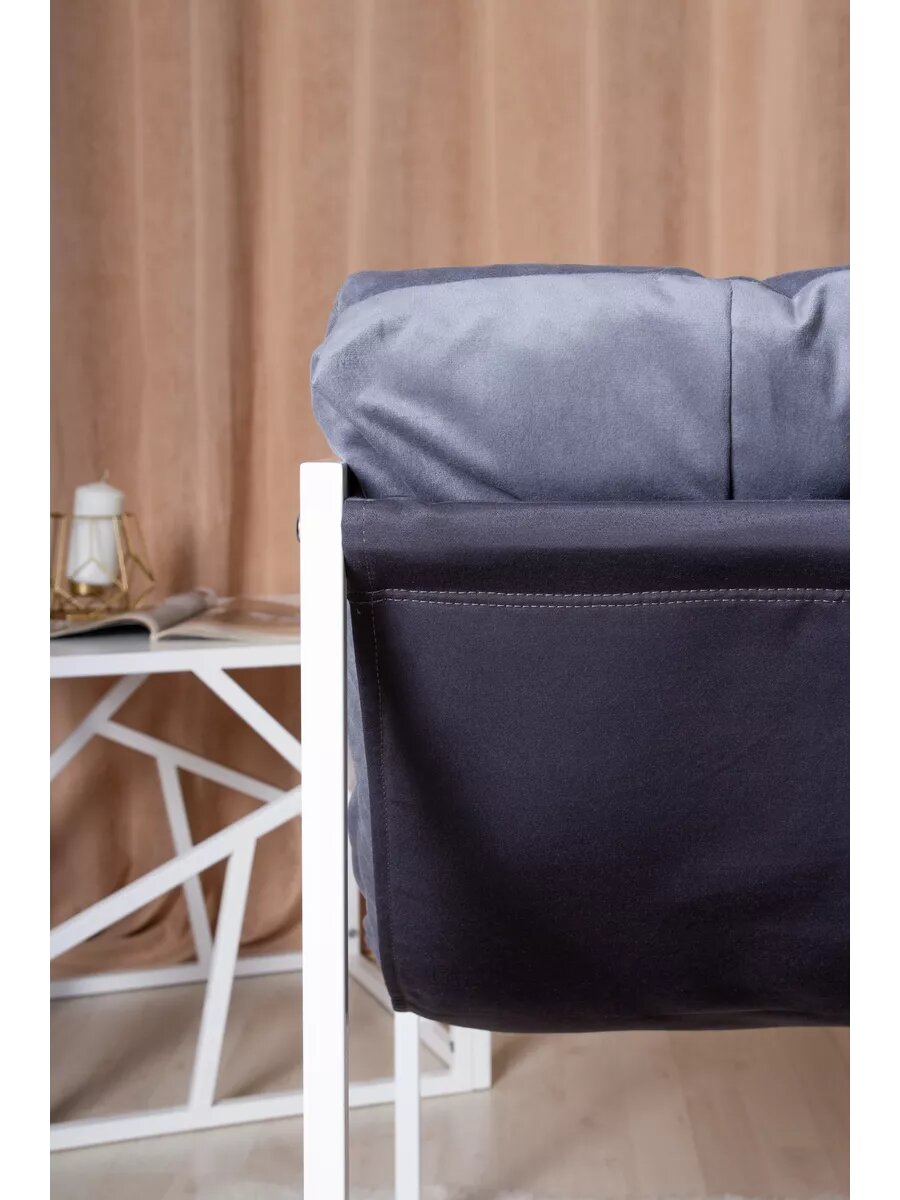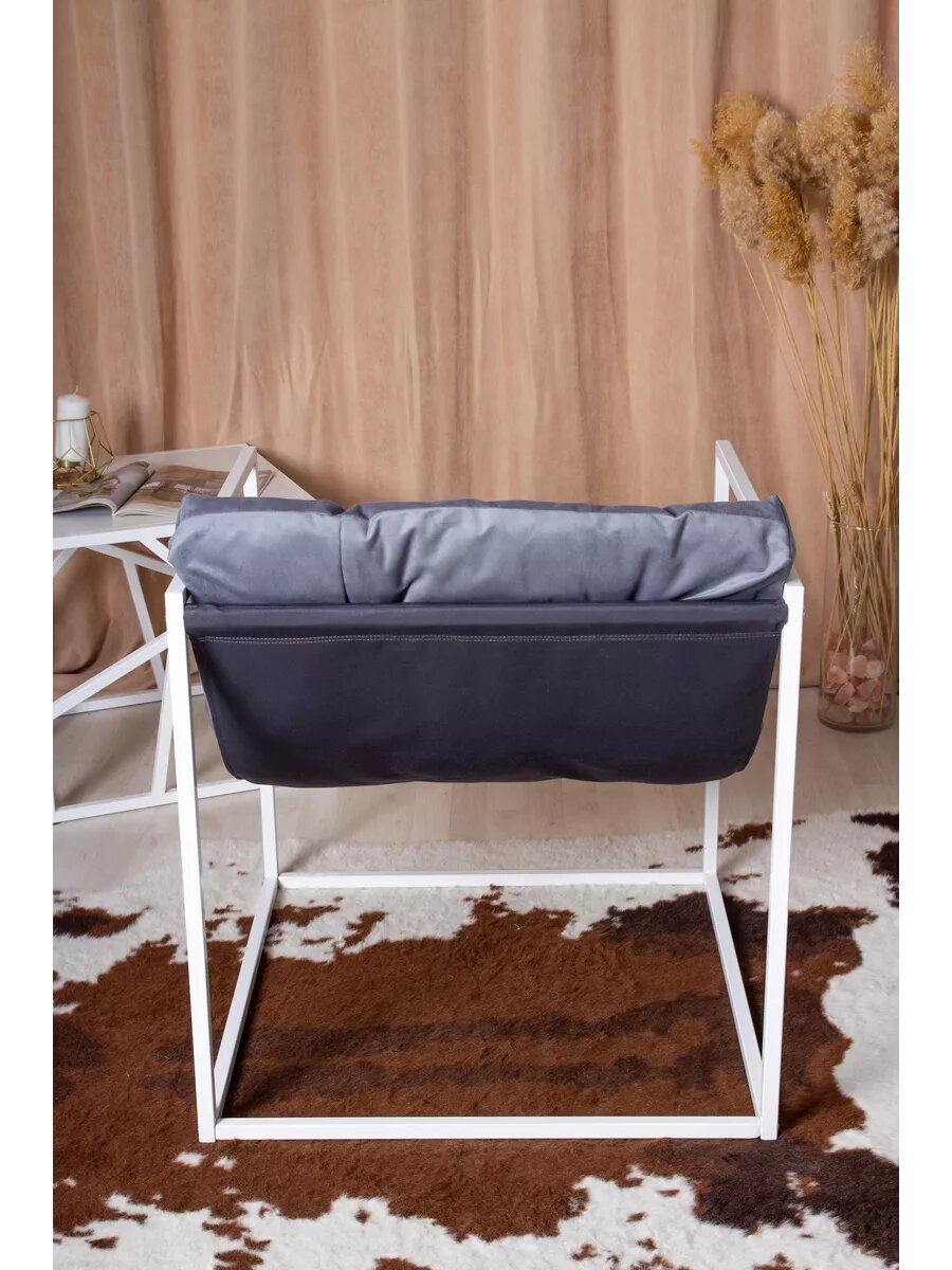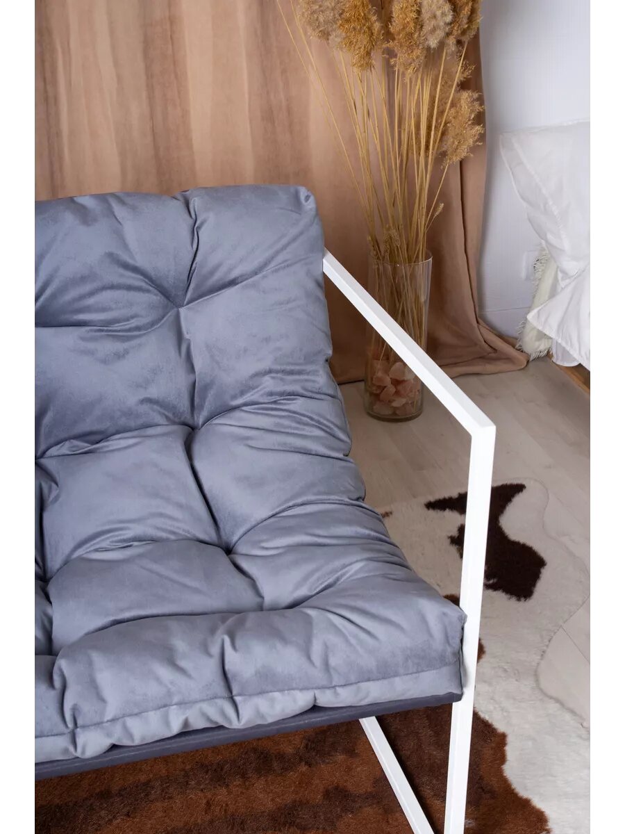 Купить Кресло LOFT18 "Лофт", Белый металл, Темно-серый велюр, съемные подушки, подлокотники 70*70*70 см