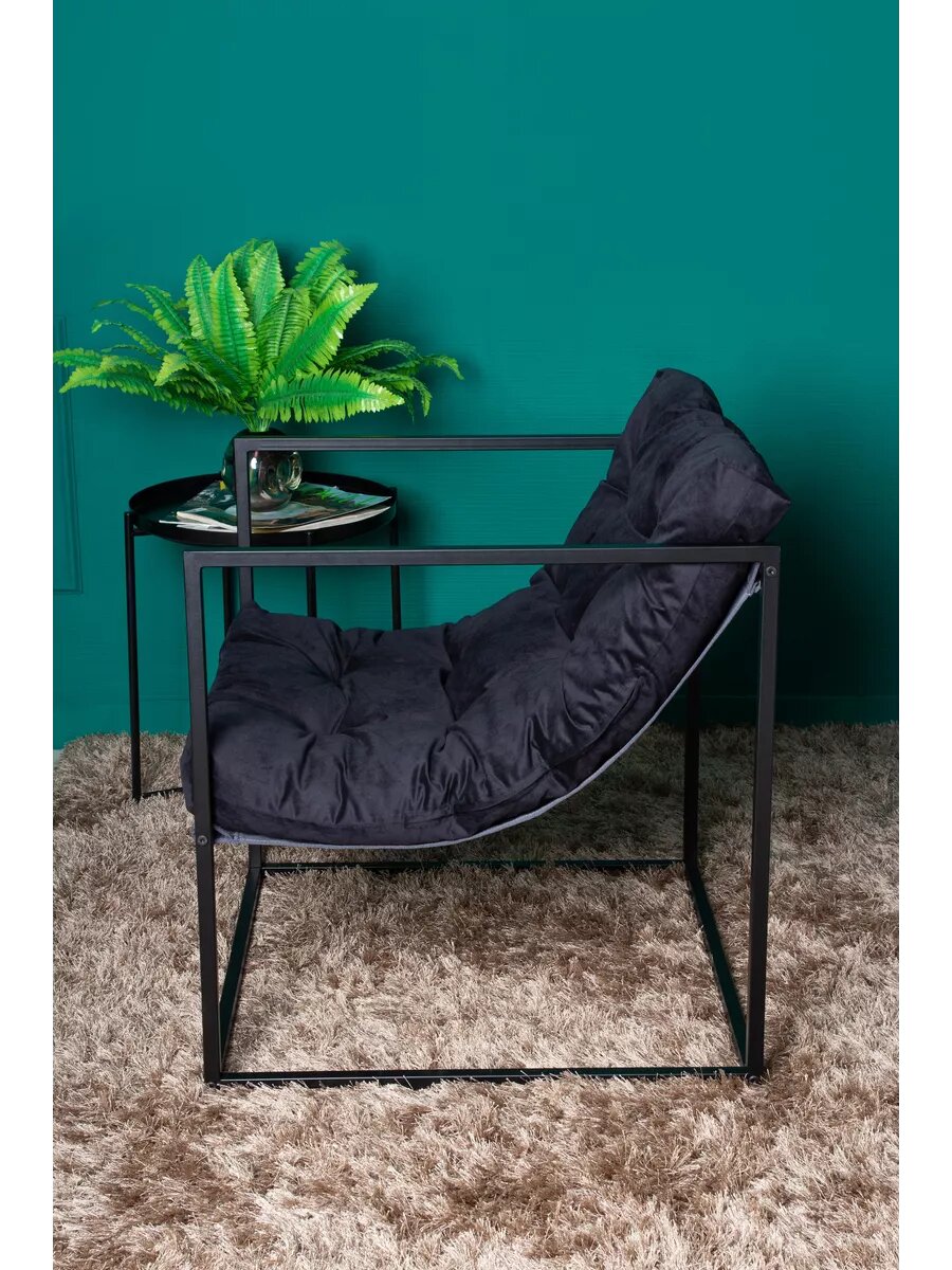 Купить Кресло LOFT18 "Лофт", Черный металл, Черный велюр, съемные подушки, подлокотники 70*70*70 см