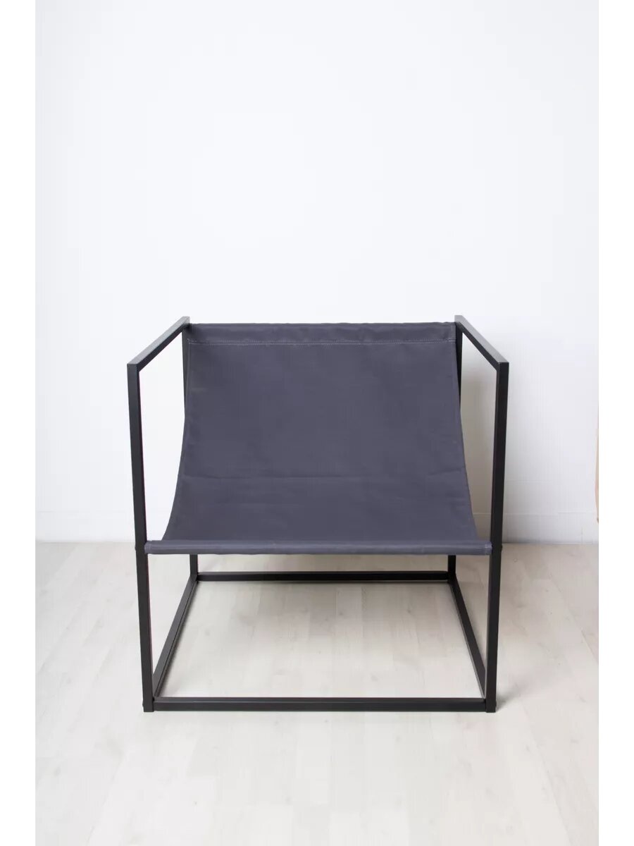 Кресло LOFT18 "Лофт", Черный металл, Темно-серый велюр, съемные подушки, подлокотники 70*70*70 см