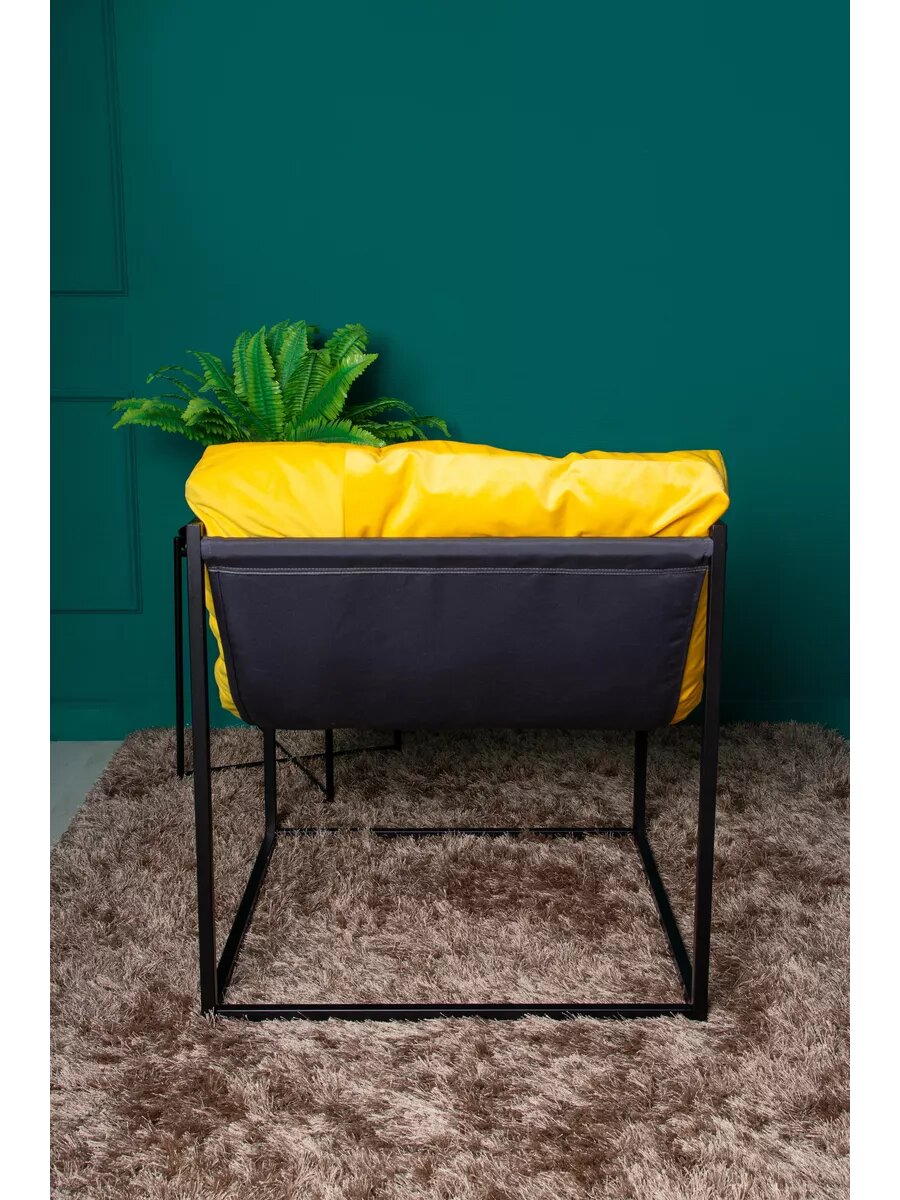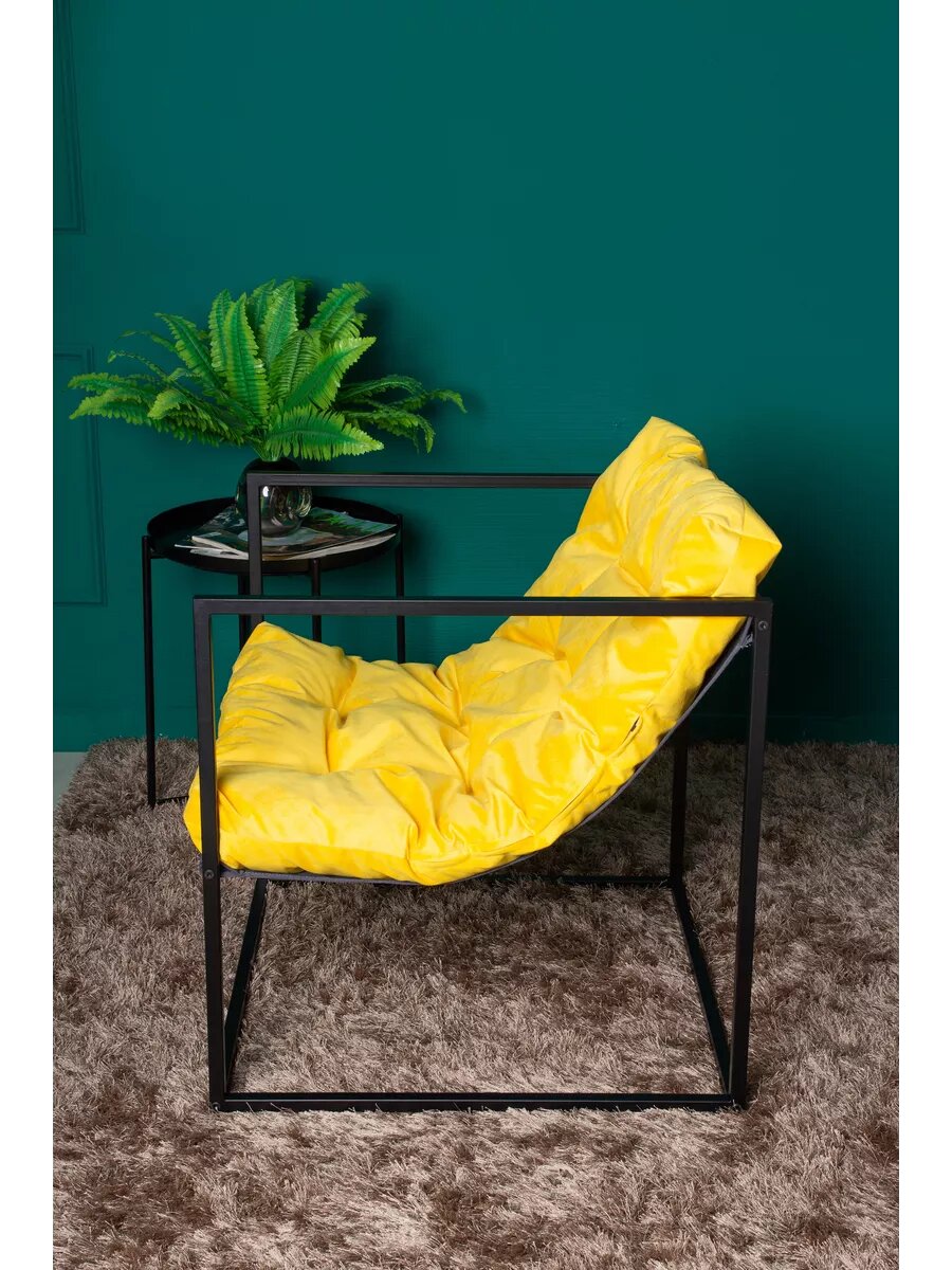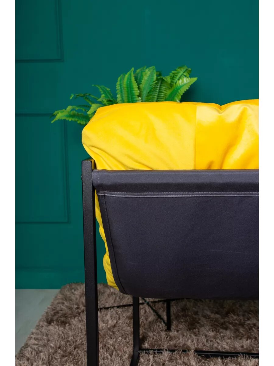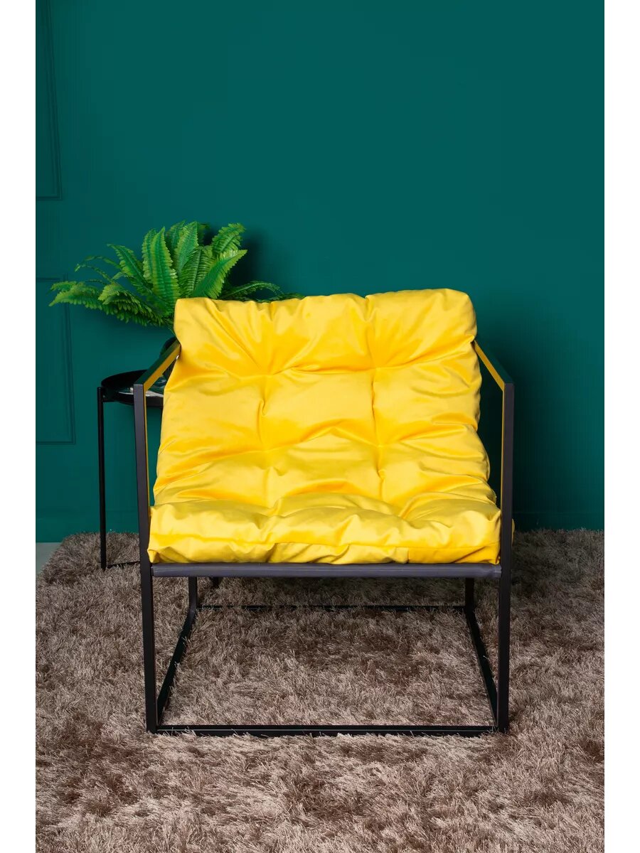Купить Кресло LOFT18 "Лофт", Черный металл, Желтый велюр, съемные подушки, подлокотники 70*70*70 см