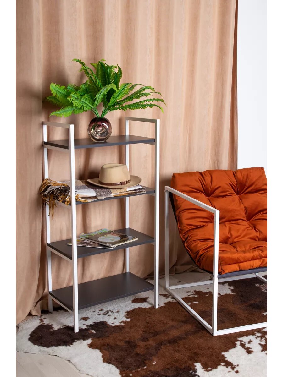Кресло LOFT18 "Лофт", Белый металл, Темно-серый велюр, съемные подушки, подлокотники 70*70*70 см