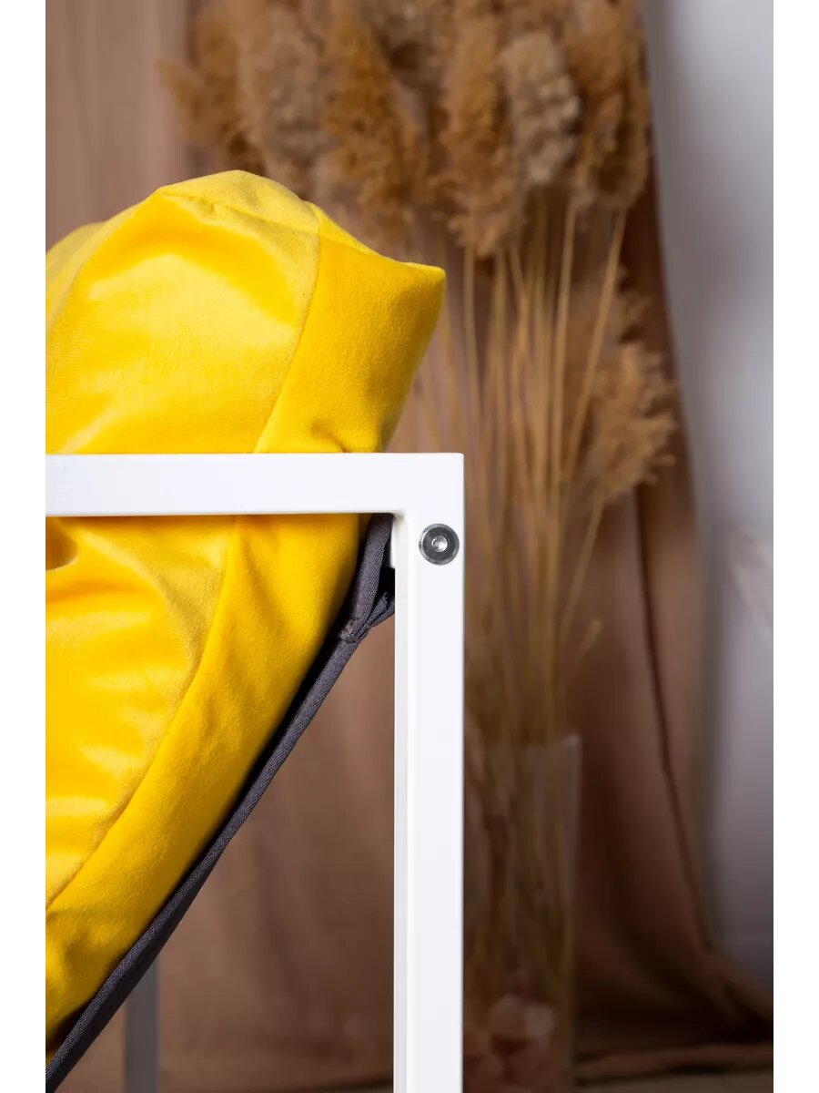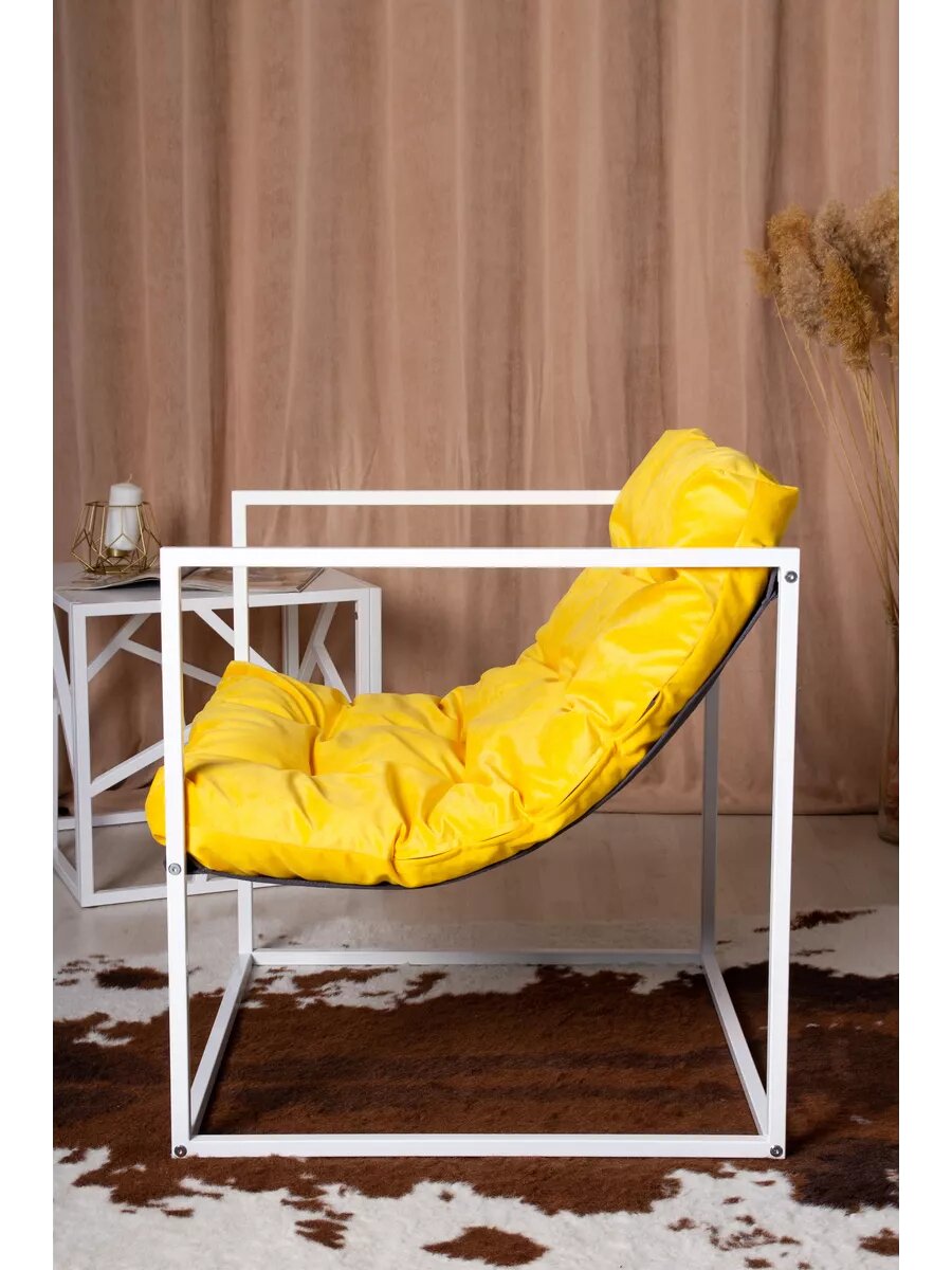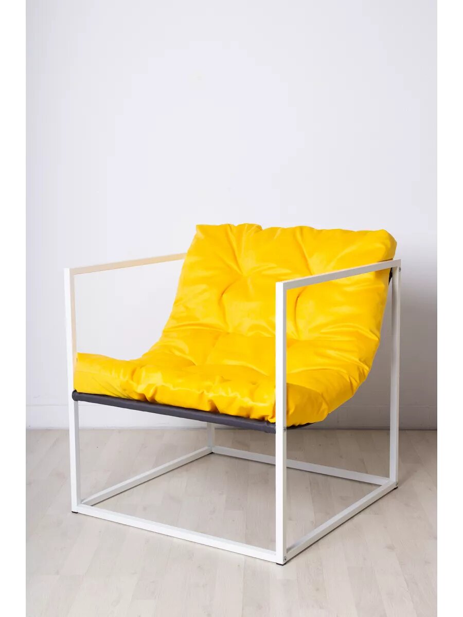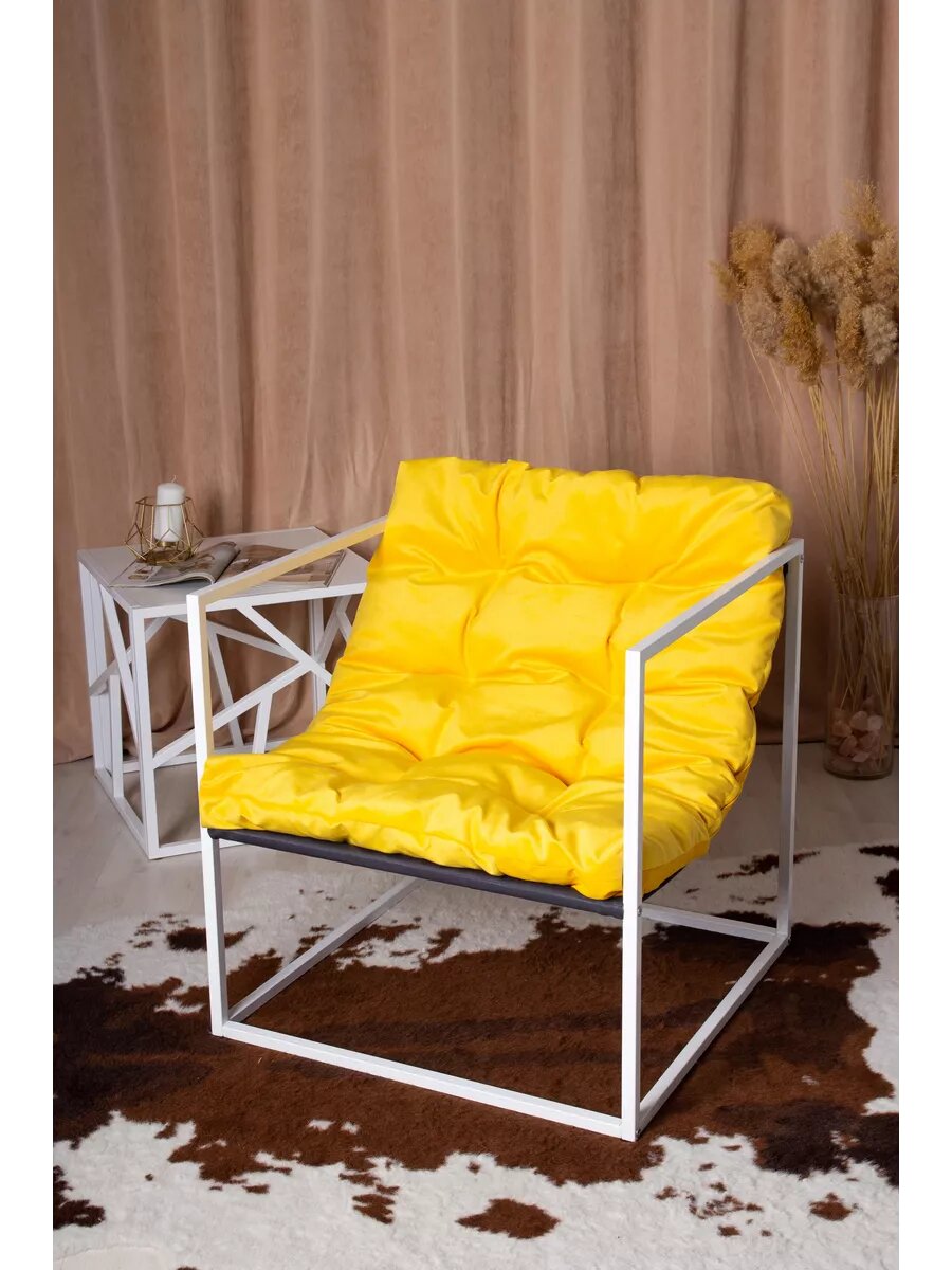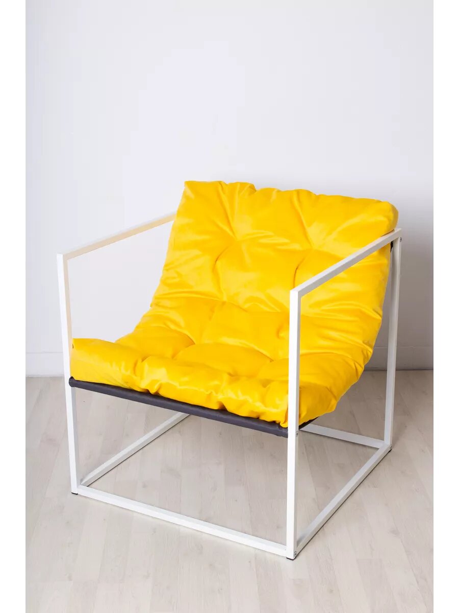 Купить Кресло LOFT18 "Лофт", Белый металл, Желтый велюр, съемные подушки, подлокотники 70*70*70 см