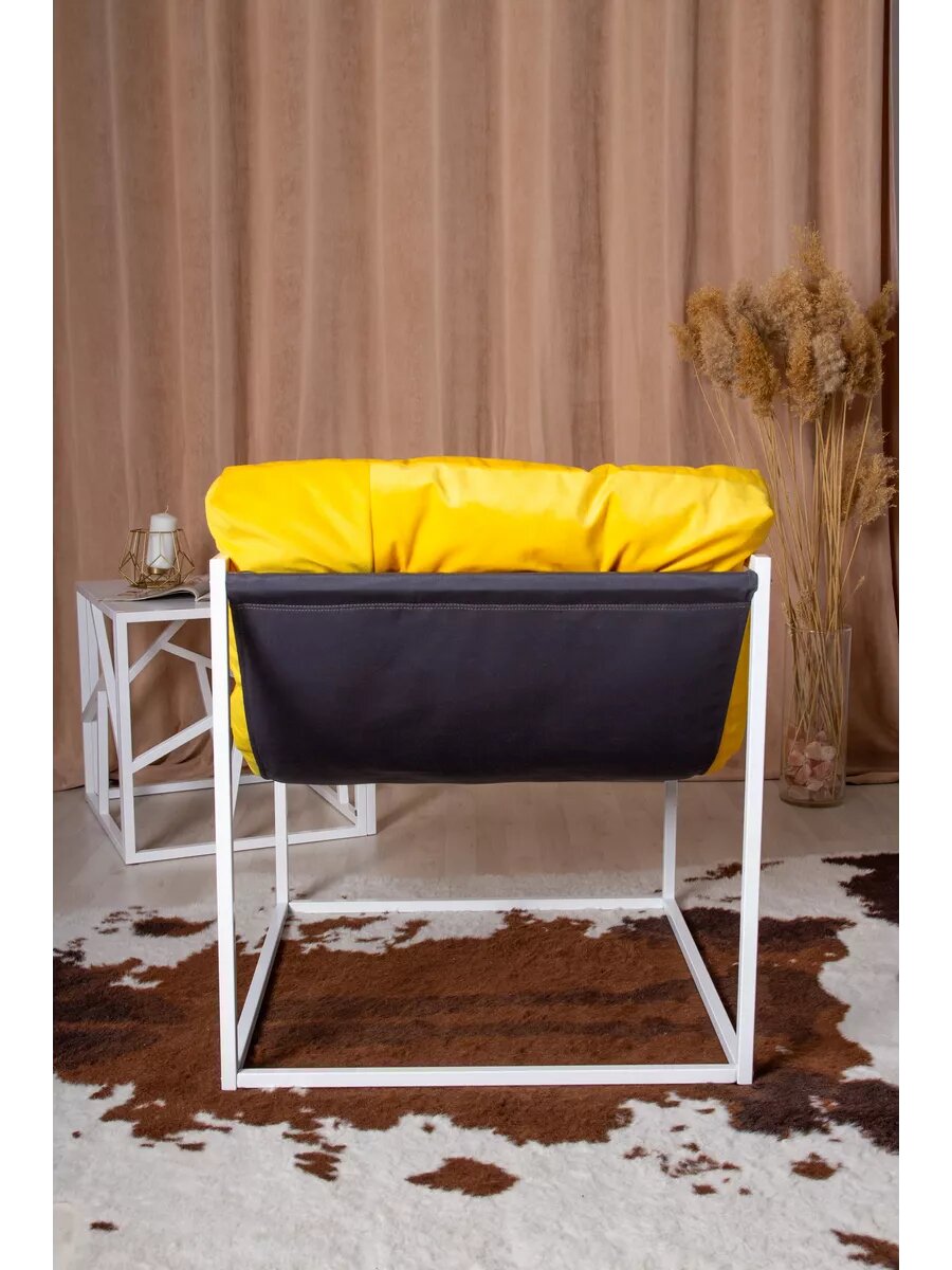 СохранитьКресло LOFT18 "Лофт", Белый металл, Желтый велюр, съемные подушки, подлокотники 70*70*70 см интересное: