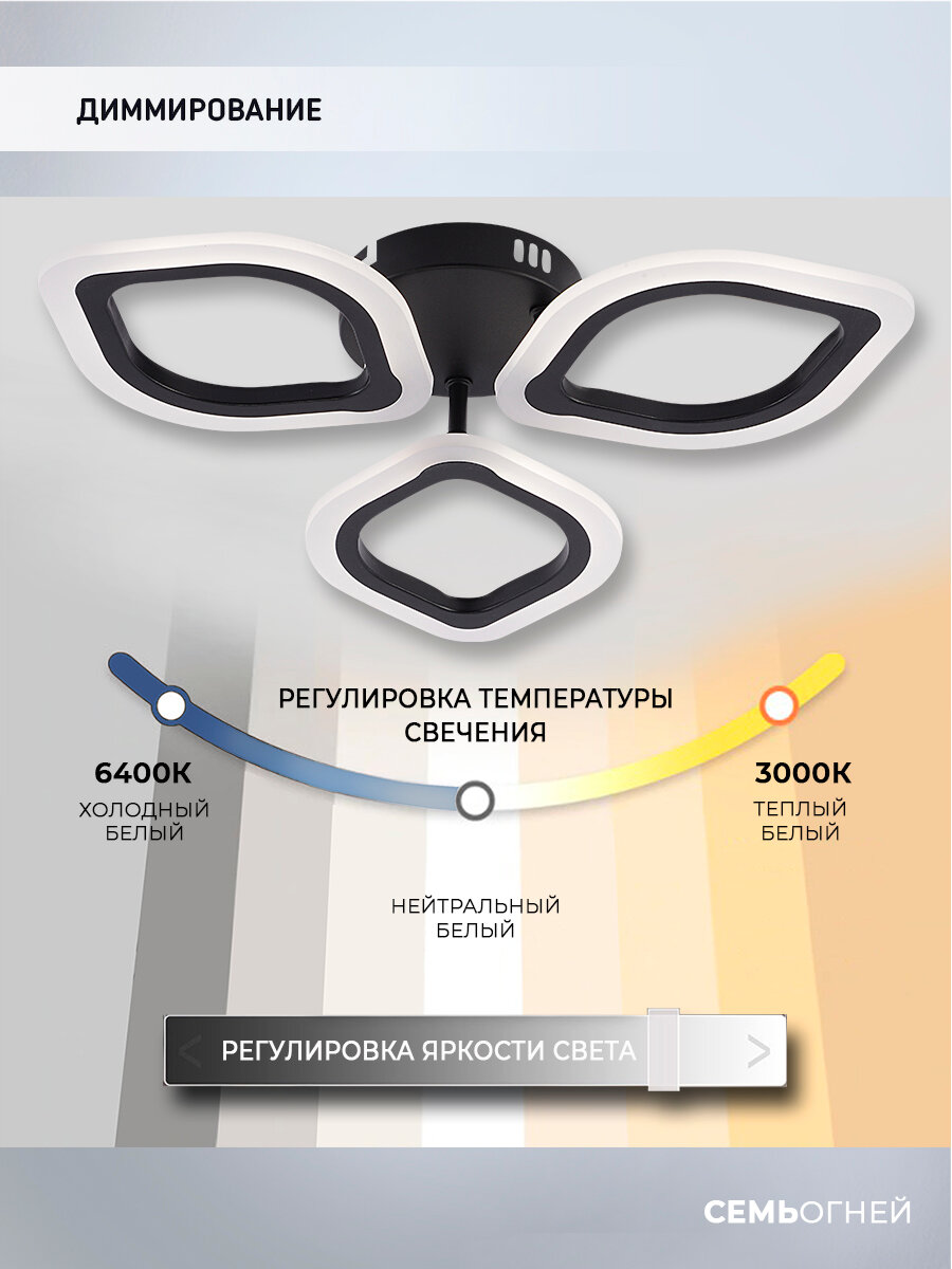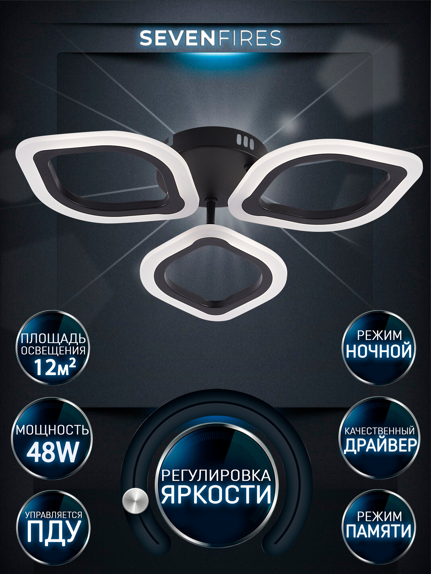 СохранитьЛюстра потолочная светодиодная Семь Огней, черная с пультом, до 12 кв. м. интересное: