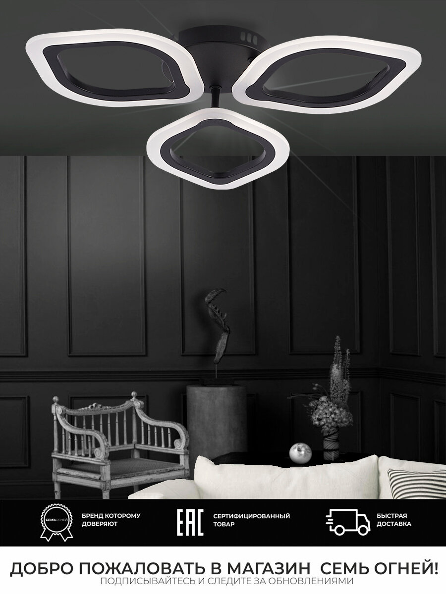 Люстра потолочная светодиодная Семь Огней, черная с пультом, для спальни, зала, кухни
