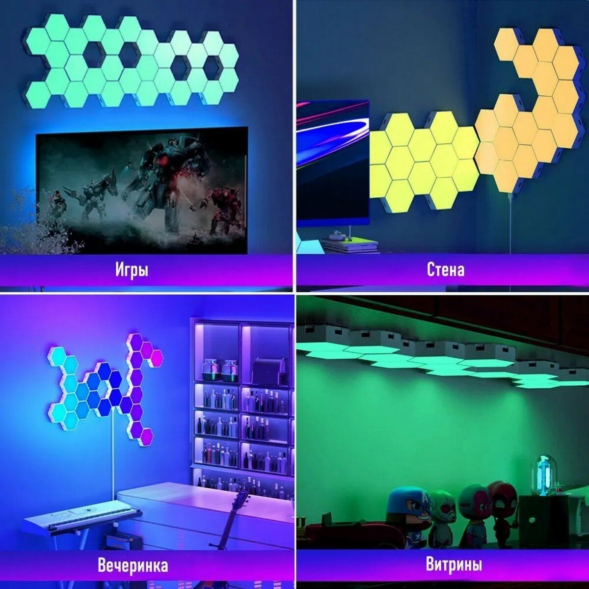 Светильник настенный модульный "Шестиугольники (Соты)", 6 модулей. Умная светодиодная панель DIY. RGB лампы